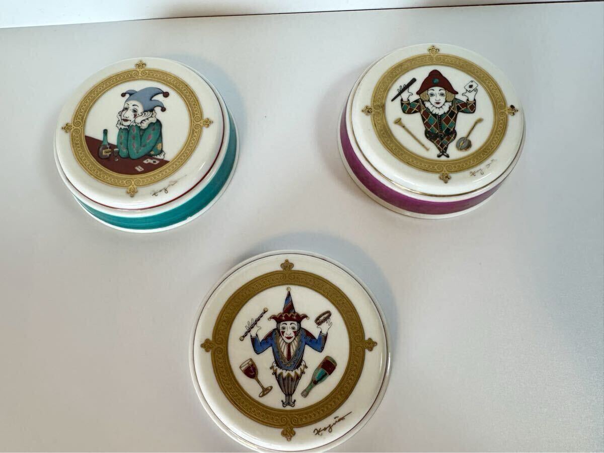 道化作家 むらいこうじさんデザインの アンティーク小皿3個セットです。