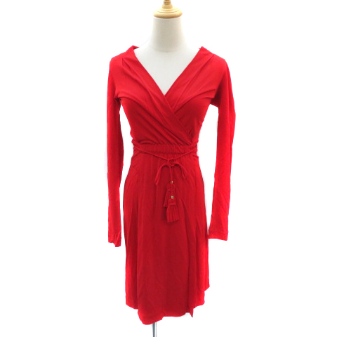 ダイアンフォンファステンバーグ DIANE von FURSTENBERG ワンピース ミモレ丈 長袖 Vネック 0 赤 レッド /YK3 レディース