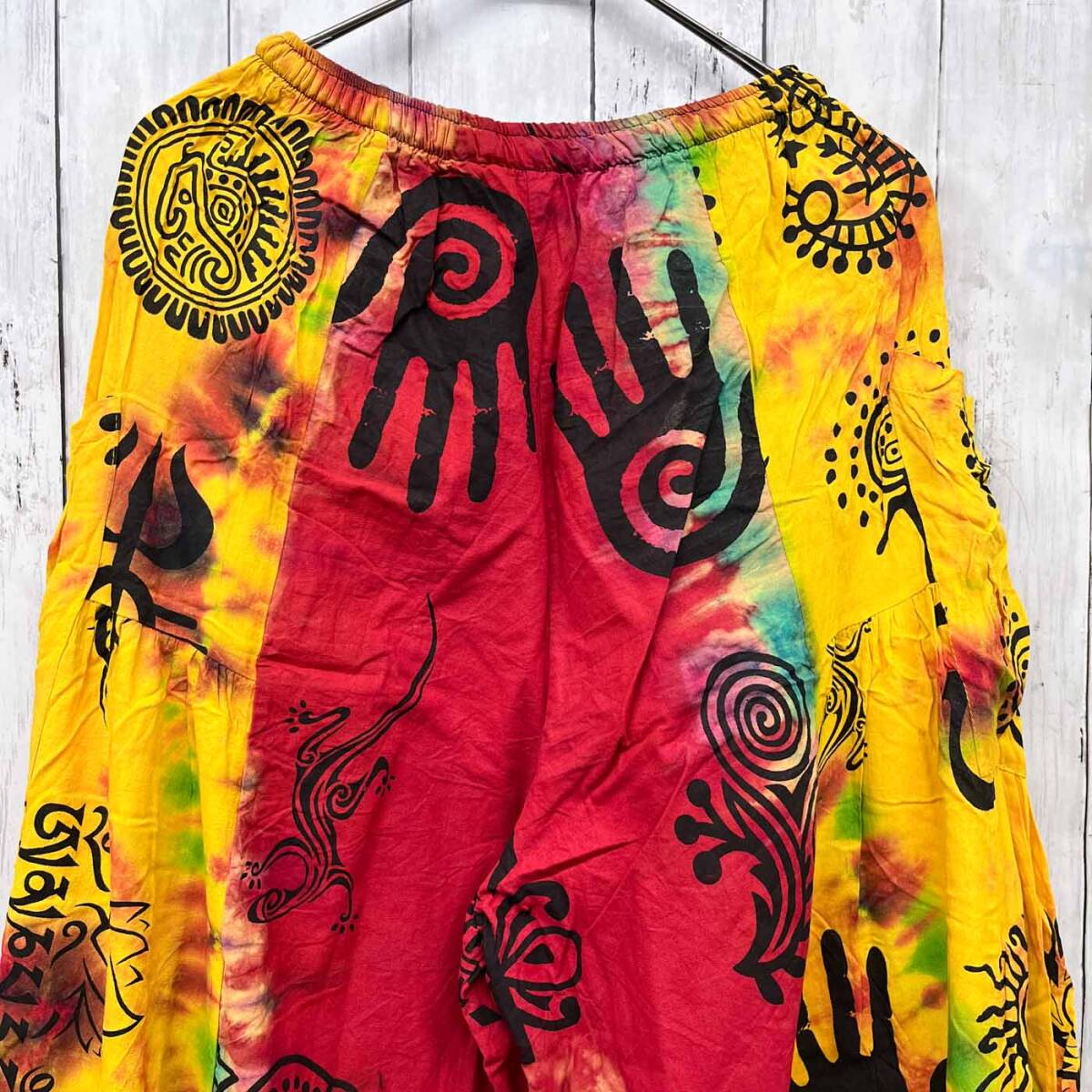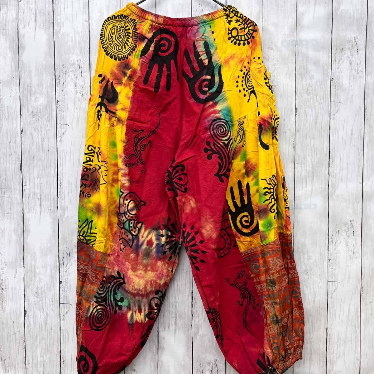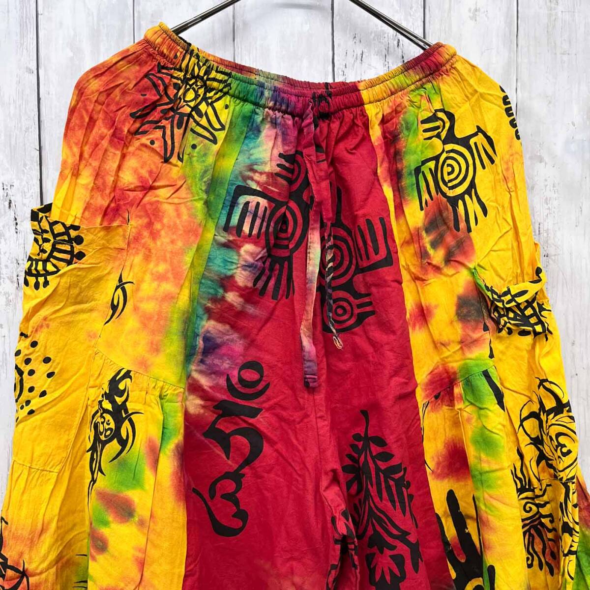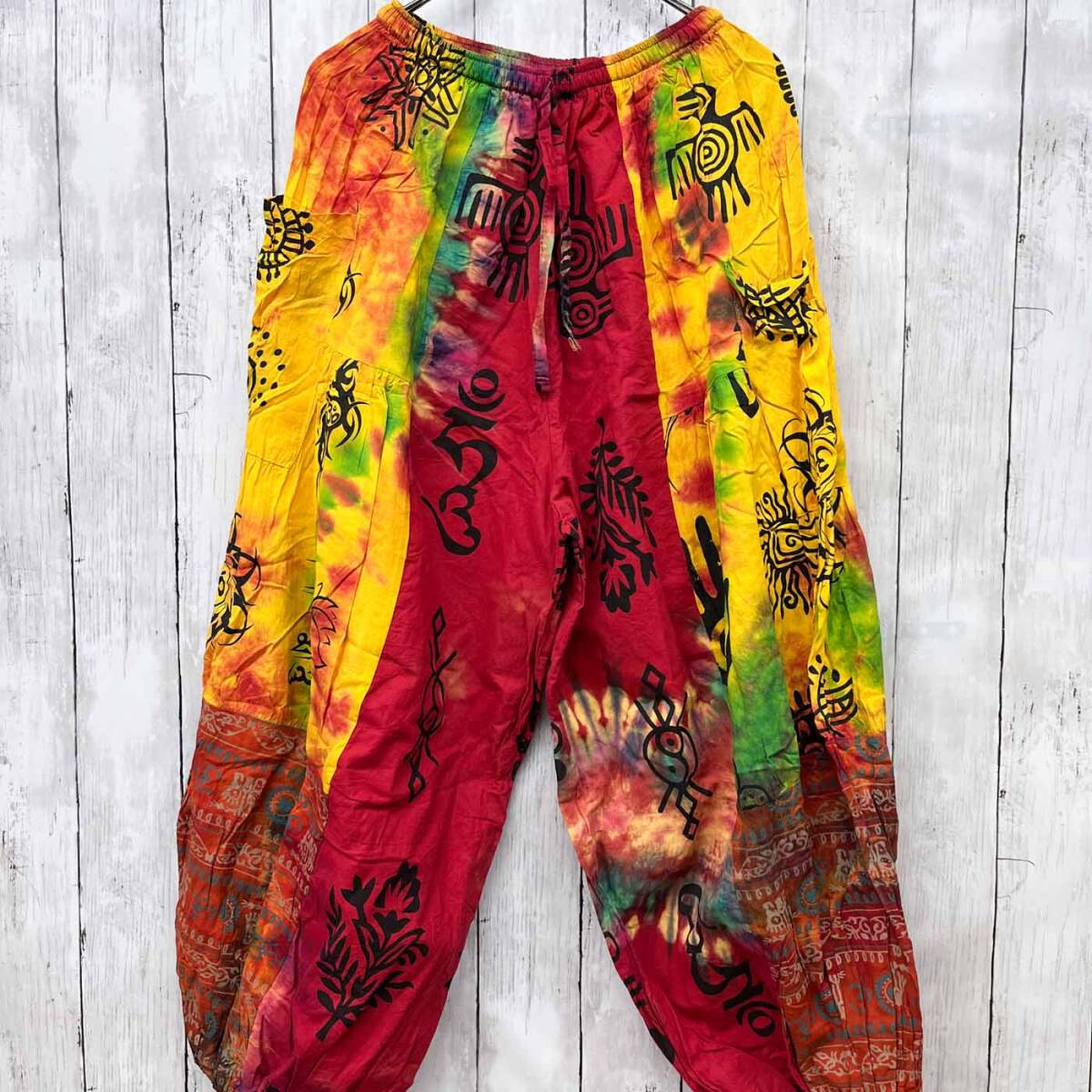 ワイドパンツ パッチワーク タイダイ エスニック メンズ レディース タイ製品 フリーサイズ D-345