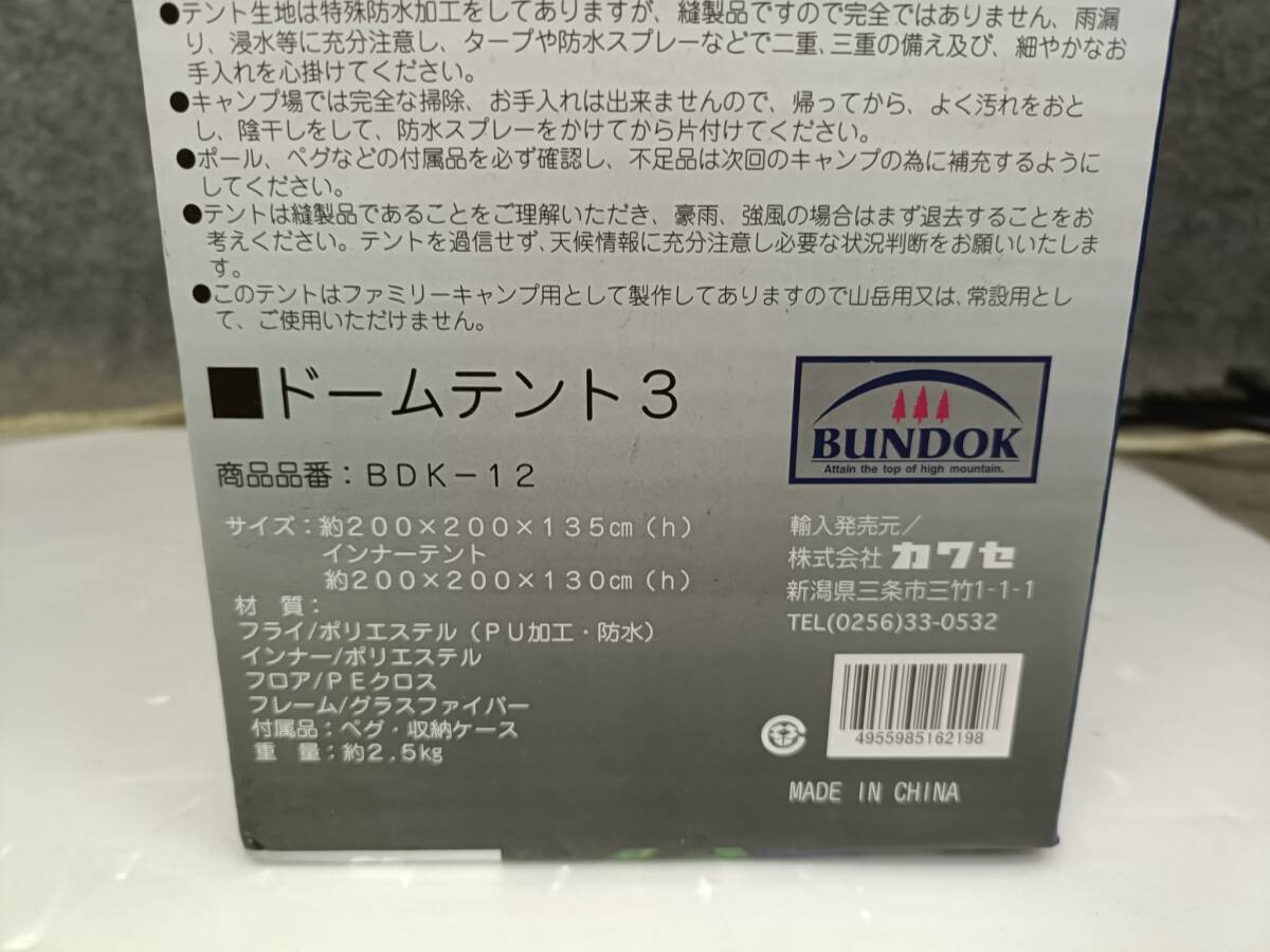 ★カワセ BUNDOK ドーム型テント 3 BDK-12 キャンプ用品 テント・タープ ドームテント