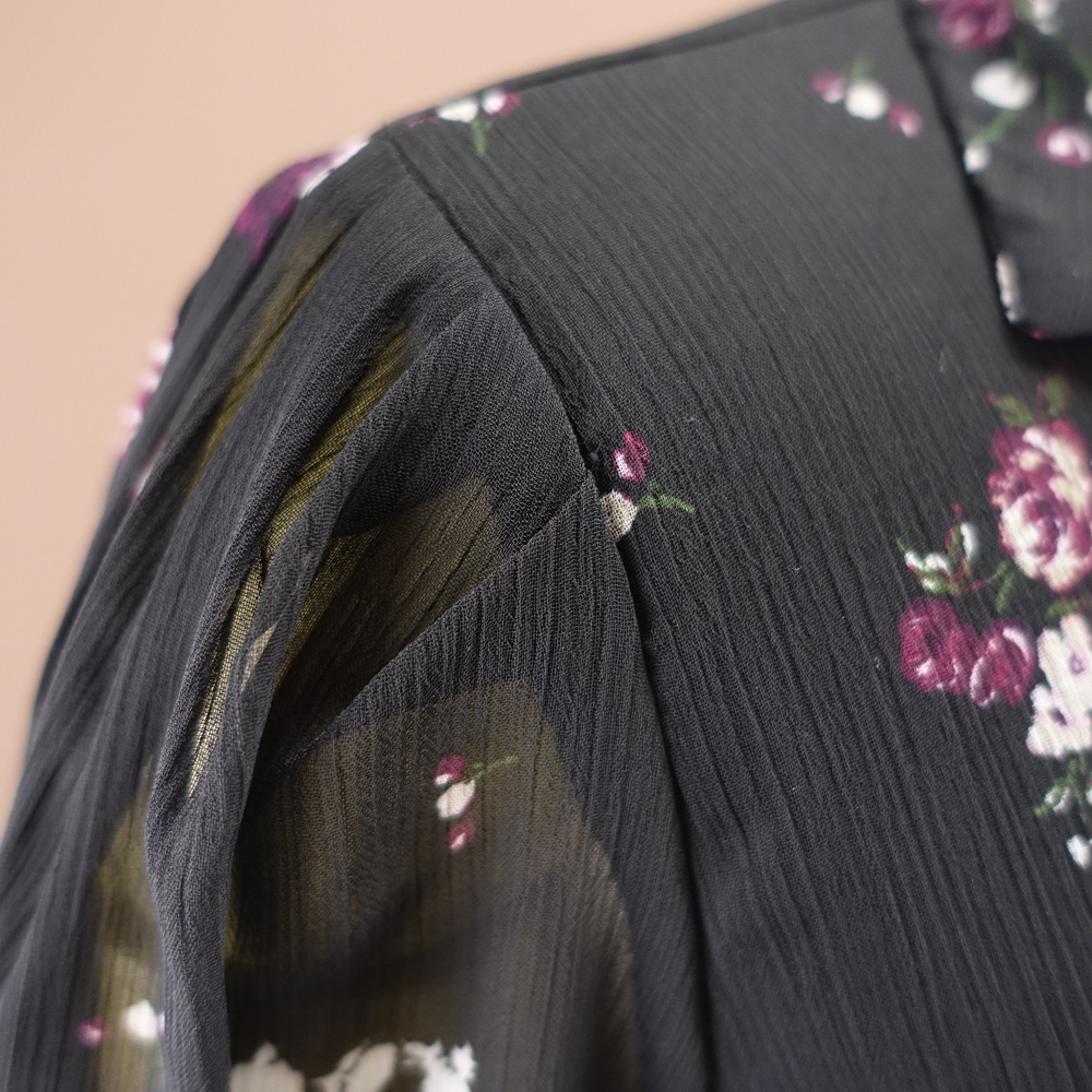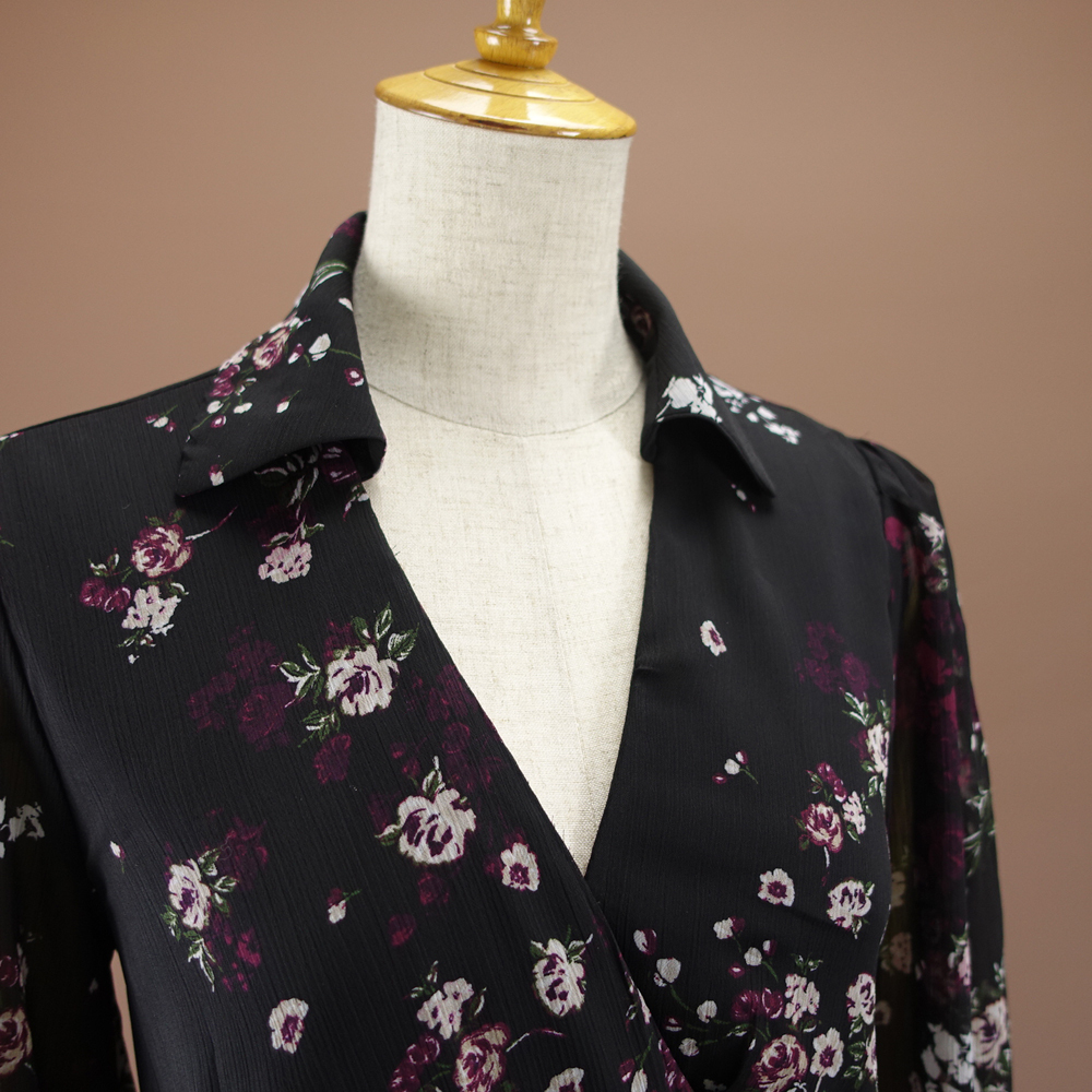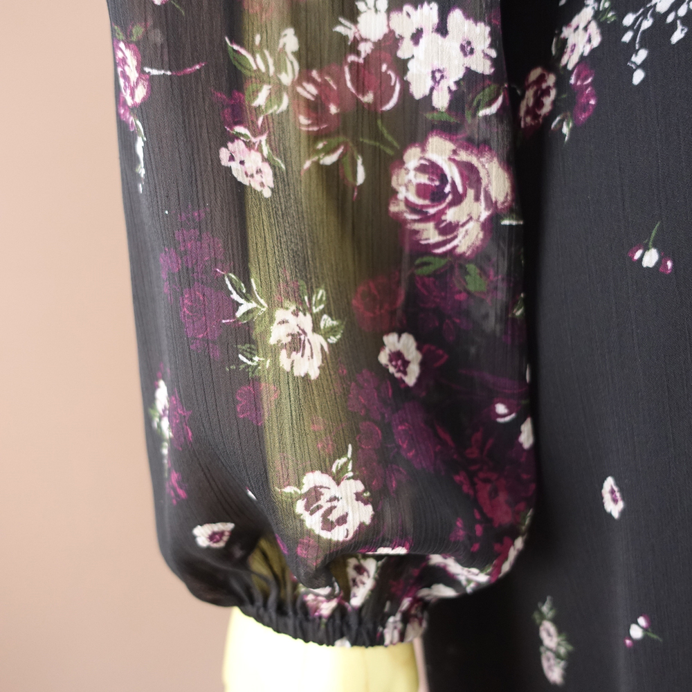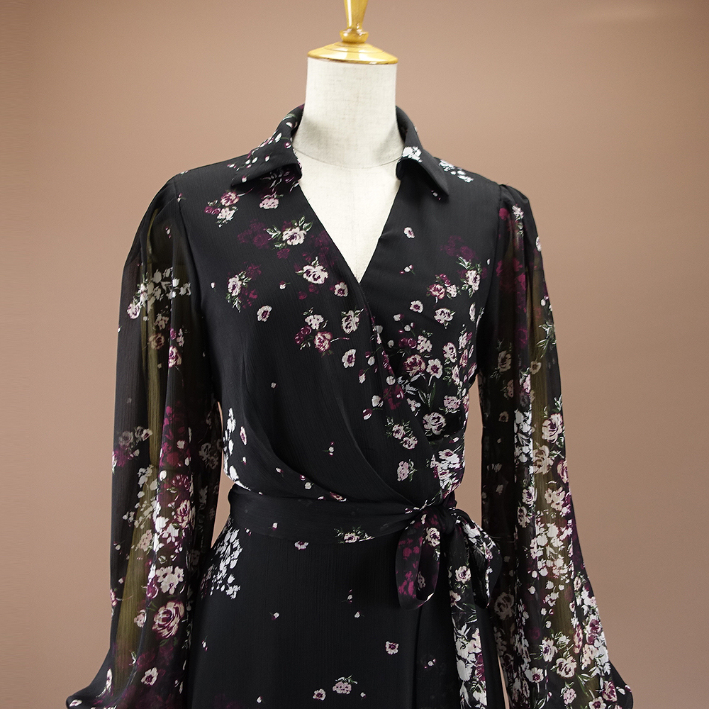 新品 DKNY 9号から11号 ダナキャラン 黒 赤紫 白 花柄 シフォン シャツワンピース パーティドレス 長袖 結婚式 二次会 通勤 華41K2806