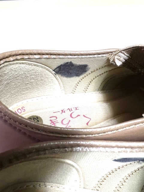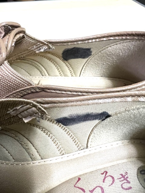 画像にありますように、両方の靴の内部に黒マジック汚れ4箇所があります。