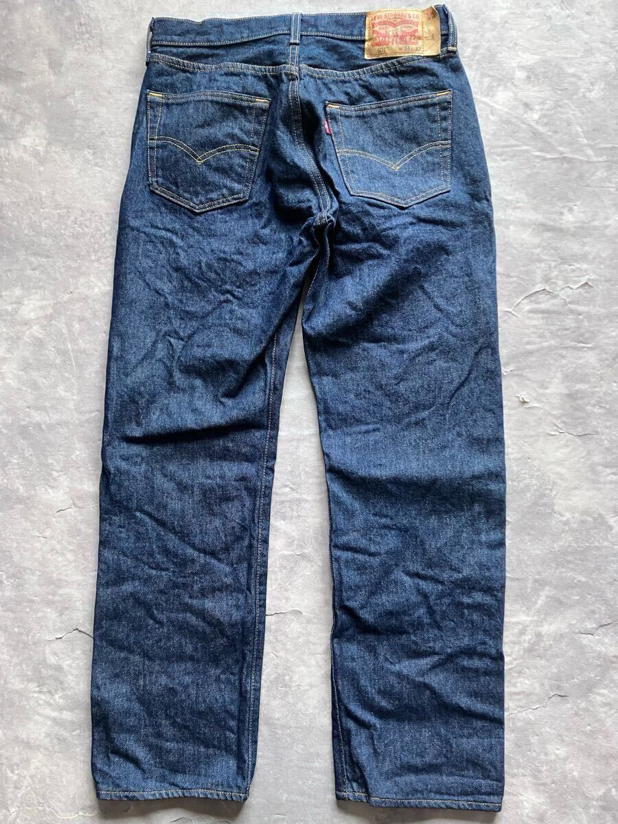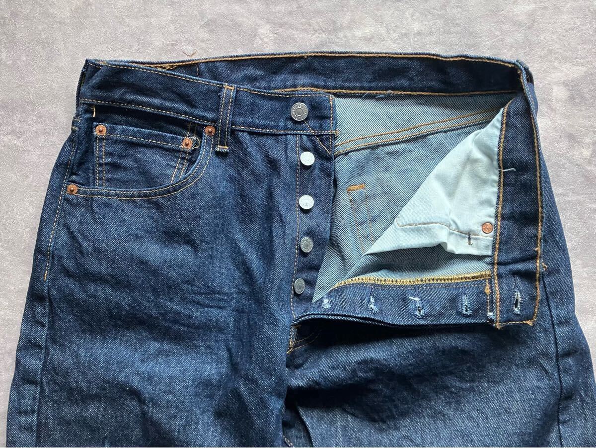 生地にハリが残っており、濃紺デニムで状態良好です。