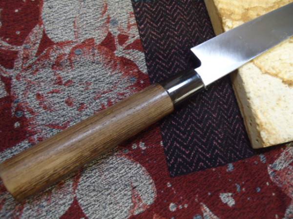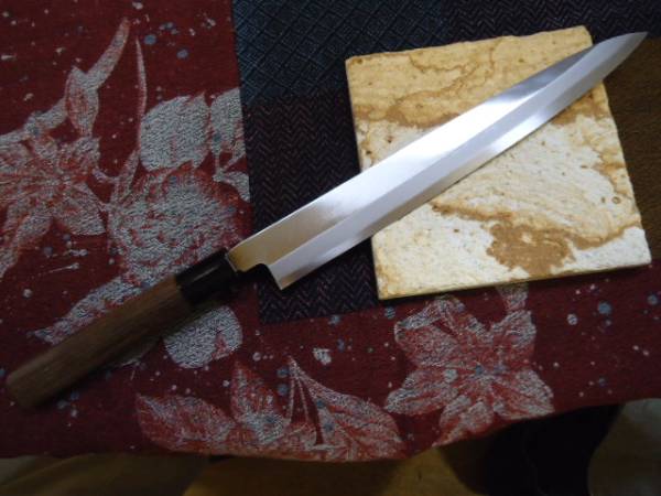 ご面倒でも必ず注意事項等お読みの上、ご入札下さい。 入札・落札後のお申し出は承れません。 右利き用片刃 本格刺身包丁 安来白鋼 しのぎ付きウエンジ柄付き(特別仕様) サイズ 全長420 mm 刃渡270 mm 刃幅 34 mm 刃厚 3 mm 重量200 g | |