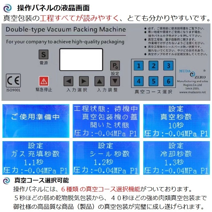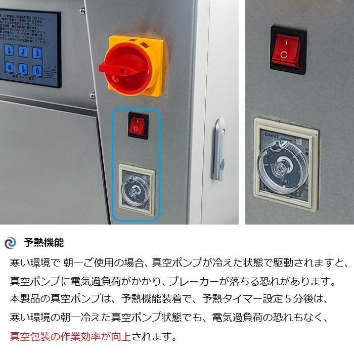 ・ 1回の真空時間 : 5秒(乾物) ~ 35秒前後(肉類)