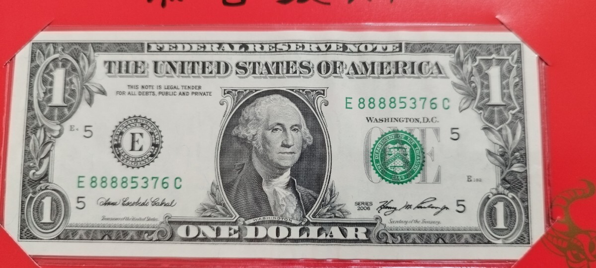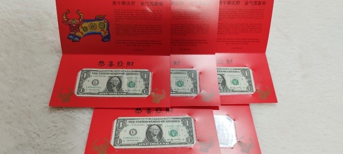 ラッキーマネー(Lucky Money)干支 十二支 丑年 牛(Ox) 1ドル紙幣 8888シリアル番号