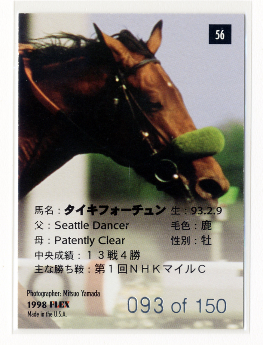 | ★タイキフォーチュン 56番 150枚限定 Fantasy 1998 The Classic シリアル入り ザ・クラシック 1998 ファンタジー 写真 画像 競馬カード | |