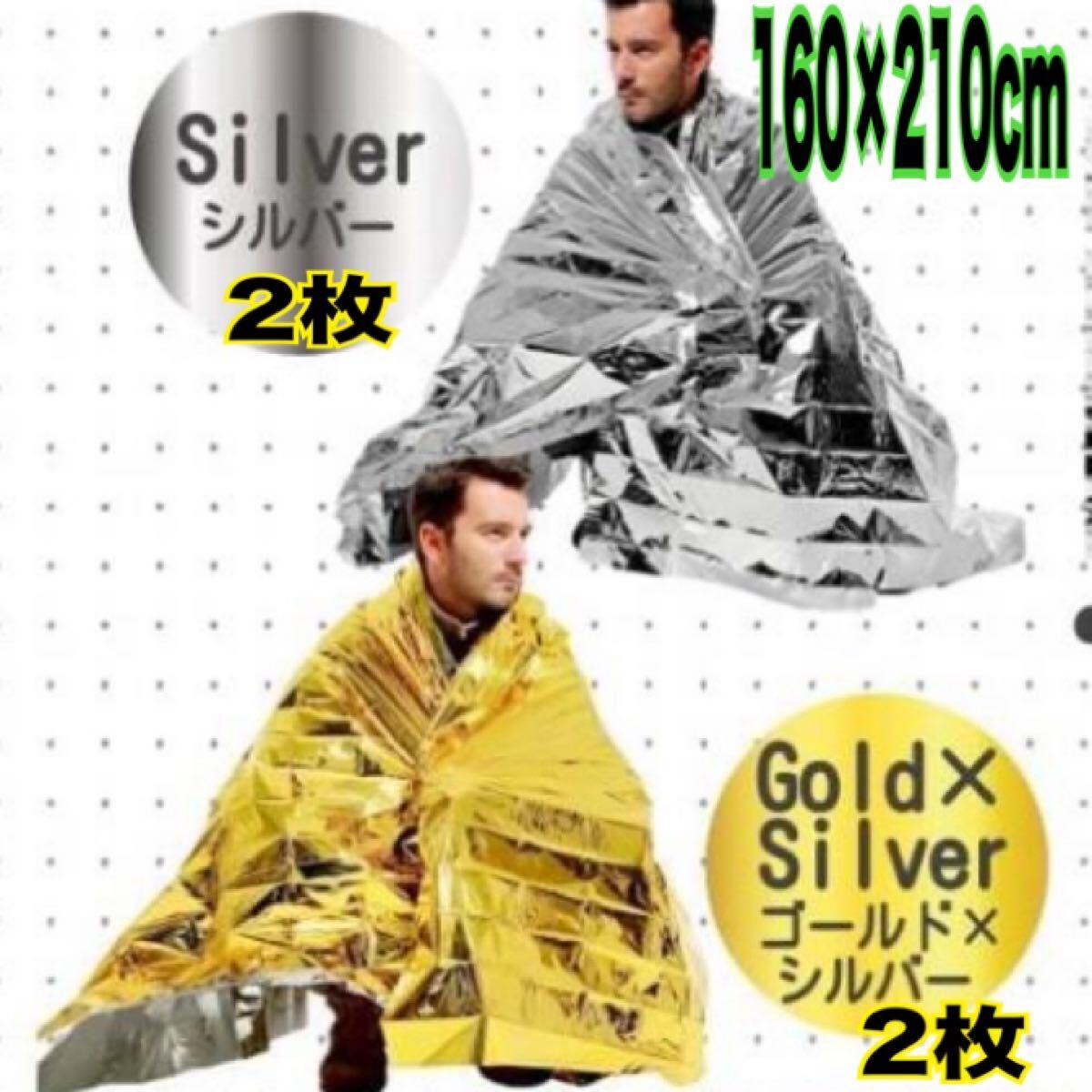 エマージェンシーシート 防災 大判 軽量 コンパクト 160cm×210cm シルバー2枚 ゴールドシルバー2枚
