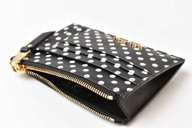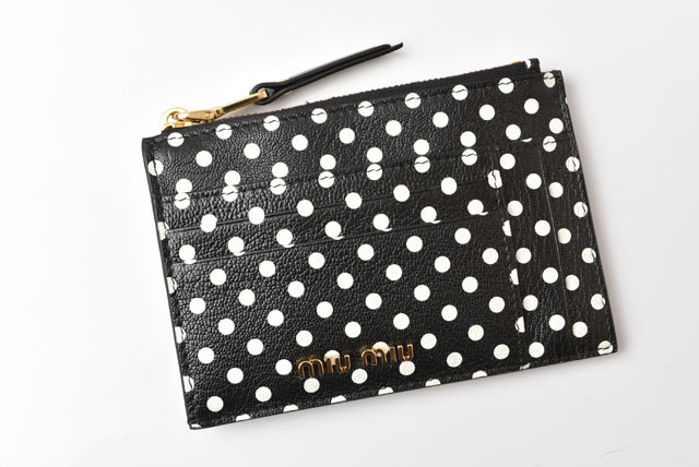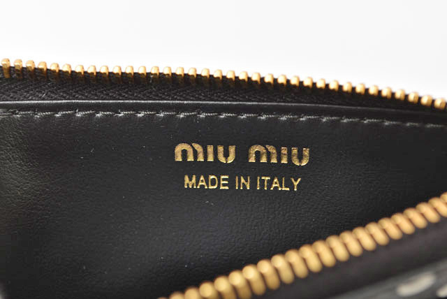 商品説明 | ミュウミュウより、人気のミニ財布です。表裏、カードポケットが充実しております。コンパクトながら機能的なミニ財布です。ポシェットやアクセサリーポーチにも入れやすいサイズです。高級感のあるレザーで、しなやかな肌触り。とってもかわいらしいです。カジュアルな服装にも合わせやすく、普段使いにも最適です。 |