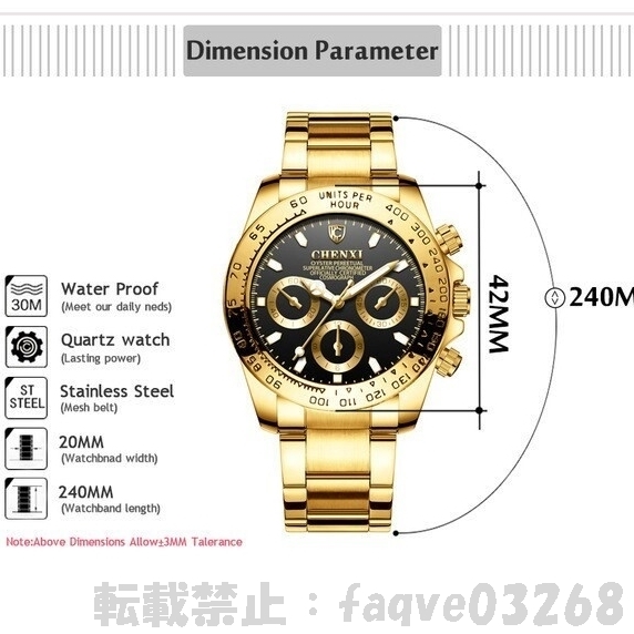 | ☆商品説明 | ・ケース大きさ:42mm ・ケース厚み:15mm ・ケース素材:ステンレス鋼 ・ベルト素材:ステンレス鋼 ・ガラス素材:ハードレックス ・ベルト長さ:24cm ・ベルト幅:20mm ・防水:3BAR 一部直訳の為、分かりにくい部分がございましたら、ご質問お願いします。 カラー、サイズなどが複数記載の場合は選択可能です。 ご落札後にご選択ください。 |