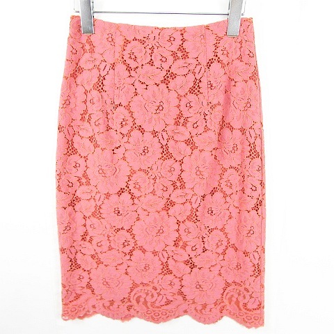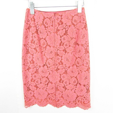 ナチュラルビューティーベーシック NATURAL BEAUTY BASIC タイト スカート 膝丈 コットン レーヨン S ピンク レース kz10888 レディース