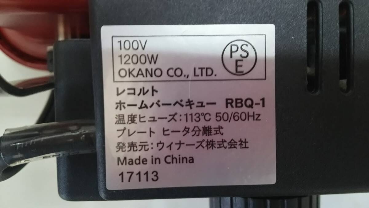 KB【菊水-13142】■レコルト ホームバーベキューRBQ-1■レッド 【通電確認済み】 ホットプレート/recolte HOME BBQ(IS) |