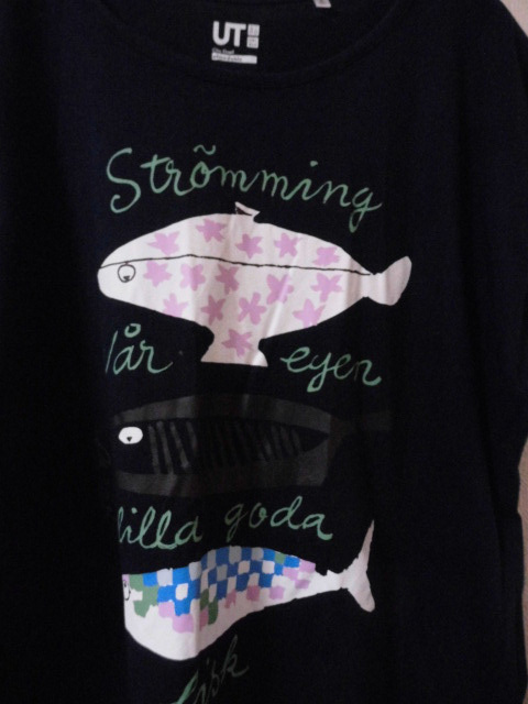 ユニクロ UNIQLO UT ネイビー 魚プリント Tシャツ M