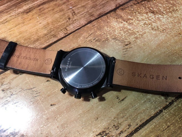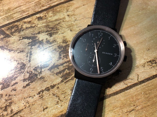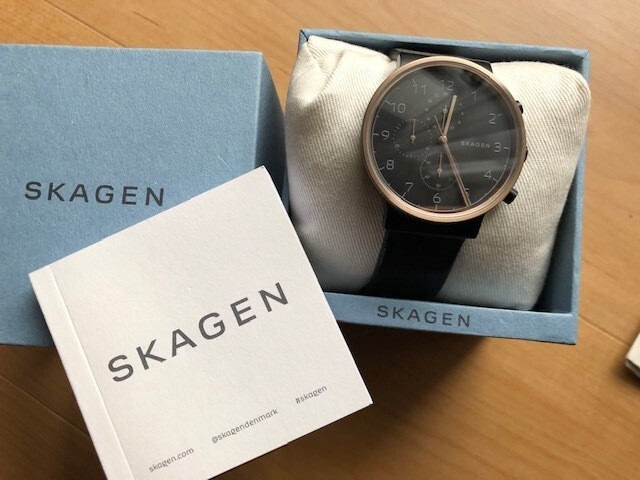 BK039 美品 付属品付 SKAGEN スカーゲン ANCHER SKW6400 クロノグラフ ブラック 純正レザーベルト クオーツ メンズ 腕時計