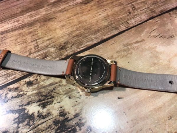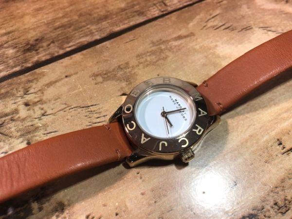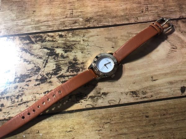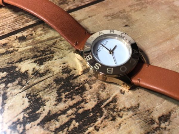 AK367 良品程度 MARC BY MARC JACOBS マークバイマークジェイコブス ゴールド×ホワイト MBM1219 純正革ベルト クオーツ レディース 腕時計