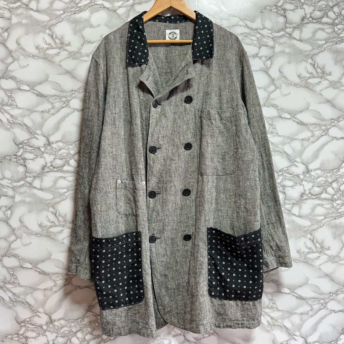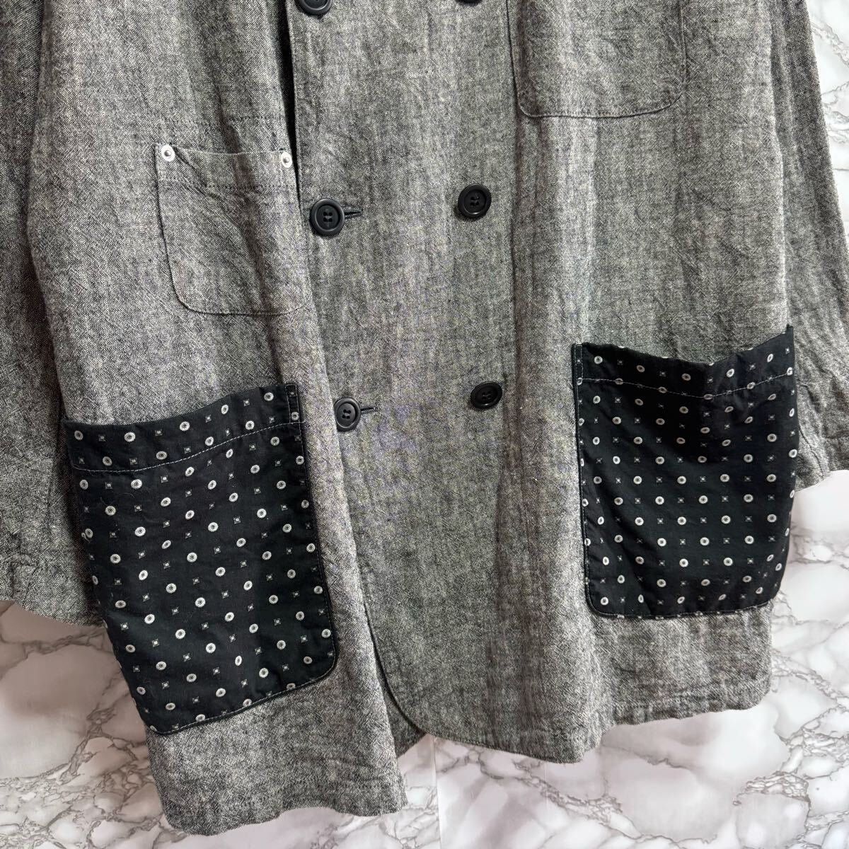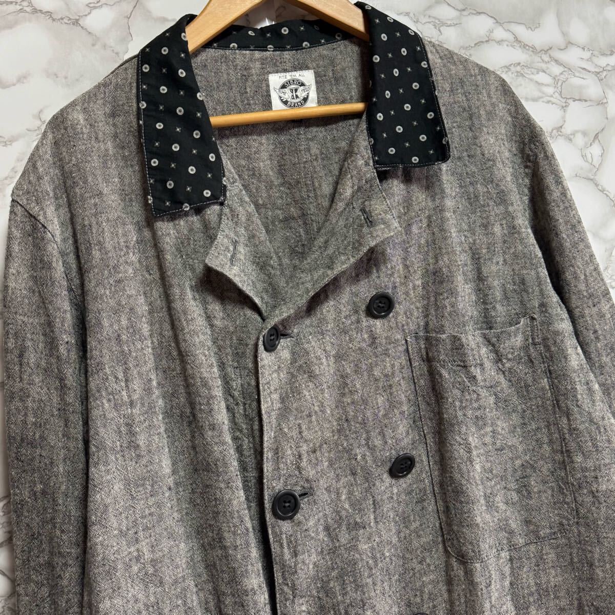 希少【SIRANO BROS シラノ ブロス【商品名】リネン 紋柄 切替/ダブル ジャケット コート【サイズ】XL
