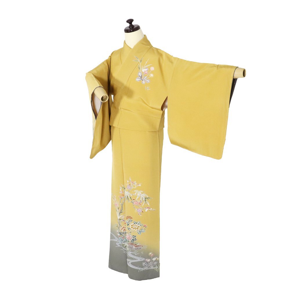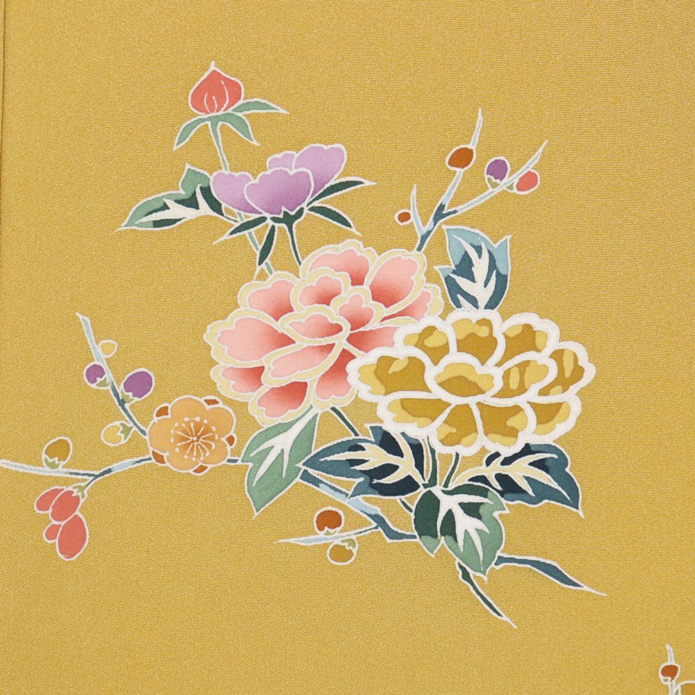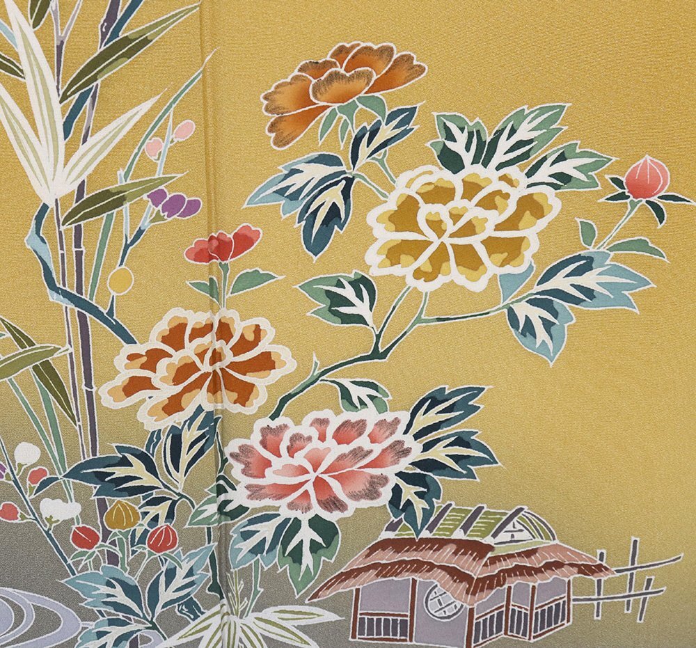地色は和色大辞典より黄朽葉色・濃色に 近いと思います。 この訪問着は地色・柄はもちろんのこと 細かい所にまでこだわっています。 模様も上品で、 照明や太陽の光にあたると、とても豪華にみえます。 とても上品な訪問着です。 生地の状態は良いと思います。 目立ったシミ汚れはないと思います。 美品です。 |