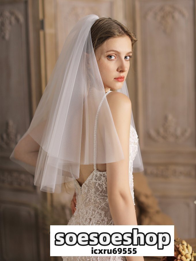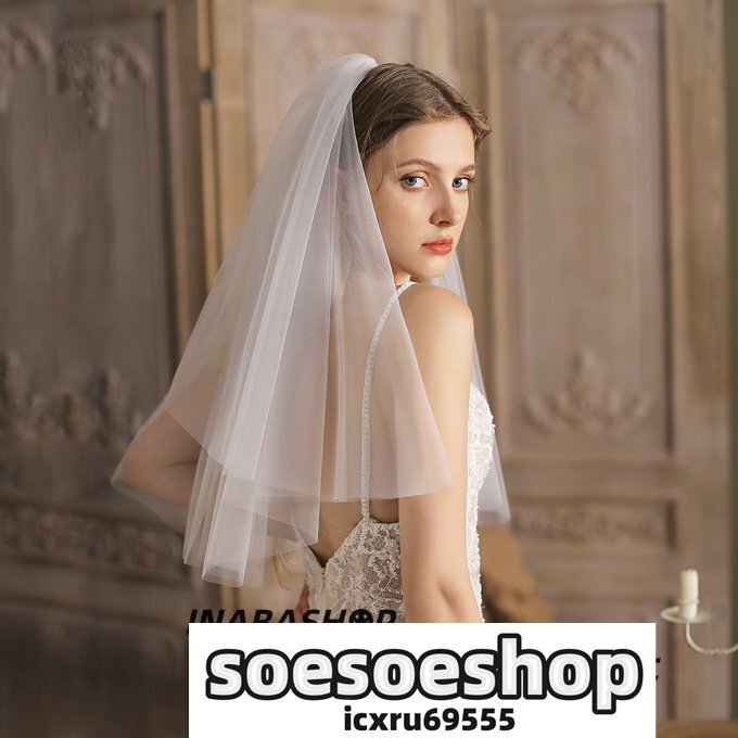 【ミドルベール】ベール 2層 金属コーム付き ベールUP儀式OK ショートベール ミドル Wedding Veil ウェディング ウエディングベール