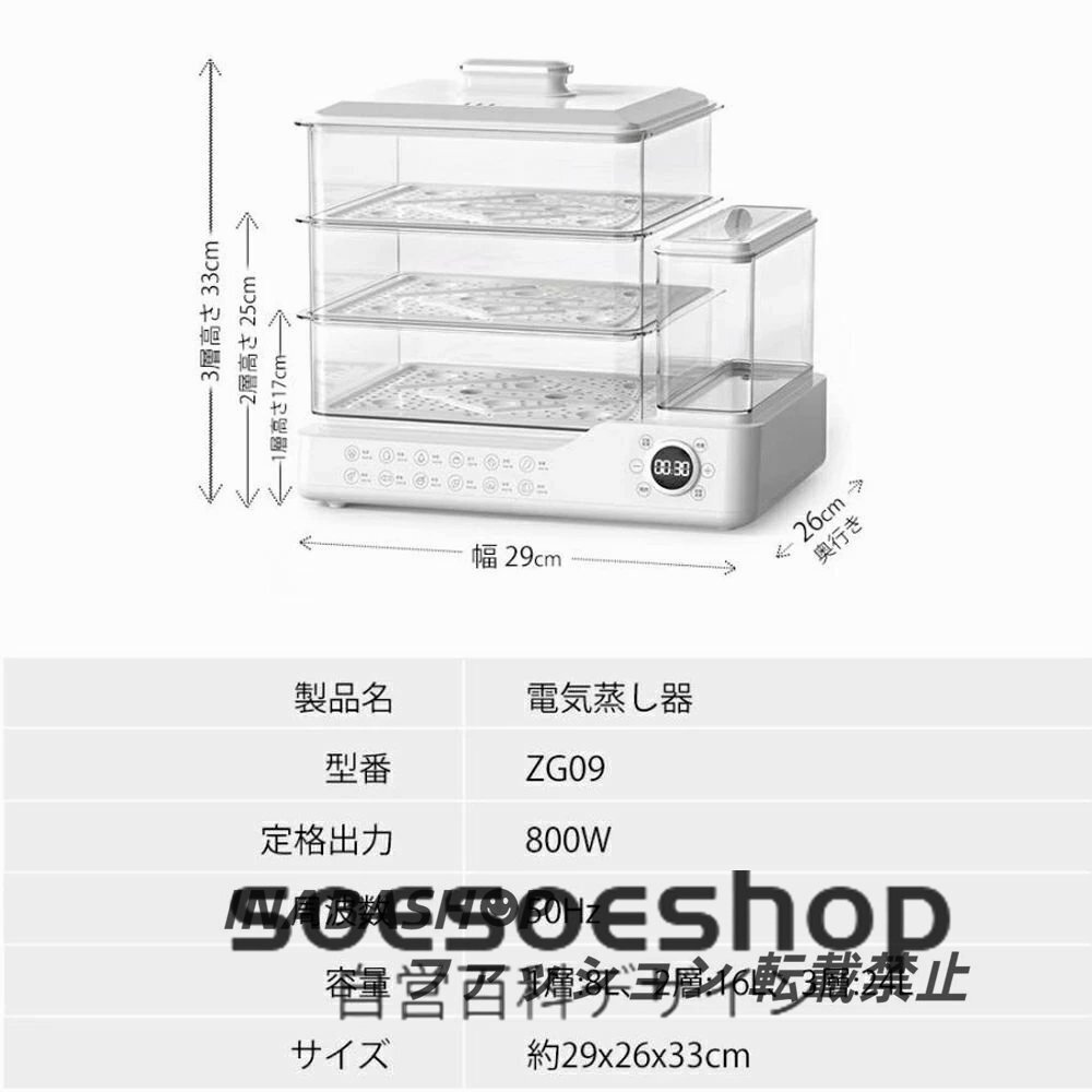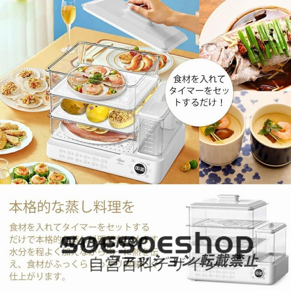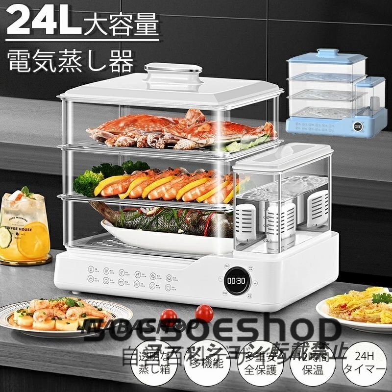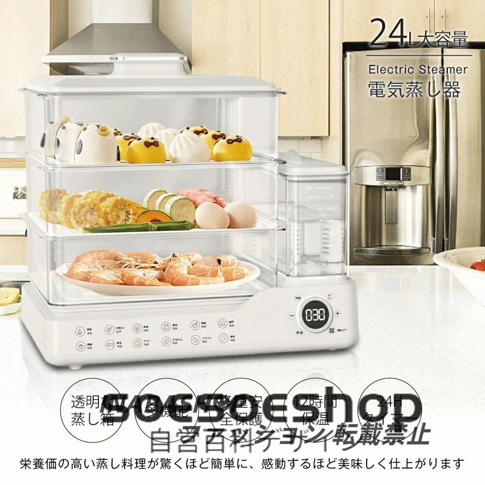 24L大容量蒸し器 家庭用 電気蒸し器 3段 多機能 調理家電 調理器具 蒸気 スチーム 食品蒸し器 蒸篭 蒸し料理 せいろ 透明 操作簡単 朝食