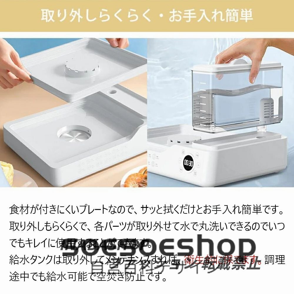 【簡単操作】 ベースに水を入れ、トレイに調理したいものを入れ、タイマーをセットするだけ。自動シャットダウン機能があります。取り外し可能なベース付き。蒸し器は保護されており、特別な容器からすべての水が蒸発すると自動的にシャットダウンします。