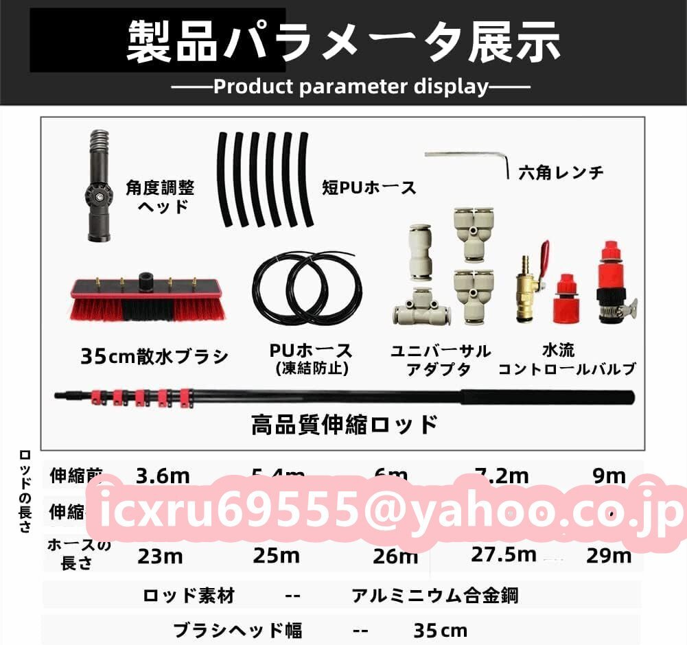 高所掃除ブラシ 散水ブラシ 給水伸縮ブラシ 外壁掃除 35Cmブラシヘッド 窓ガラス/壁掃除 業務用 取り外しが簡単 3.6m