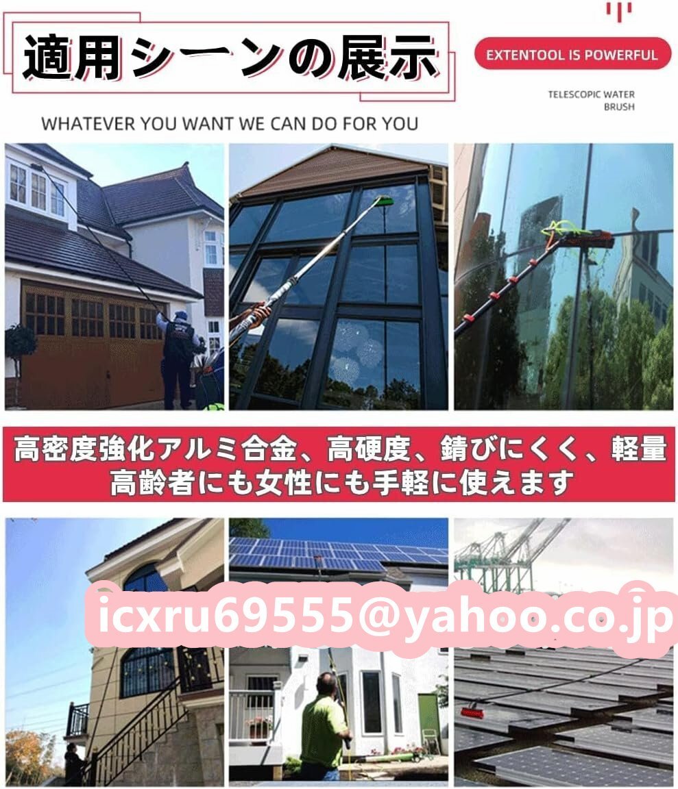 【多目的クリーニング】キットには、柔らかい毛の多目的ブラシヘッドと、格納式のカーボン合金チューブを備えた強力なクリーニングツールが含まれています。大きな窓、高い壁、看板、屋根、屋外のLEDスクリーン、その他の高い場所の清掃に適しています。 次に、床、壁、車、およびさまざまな機能を、該当する場合は簡単かつ安心して掃除することもできます。