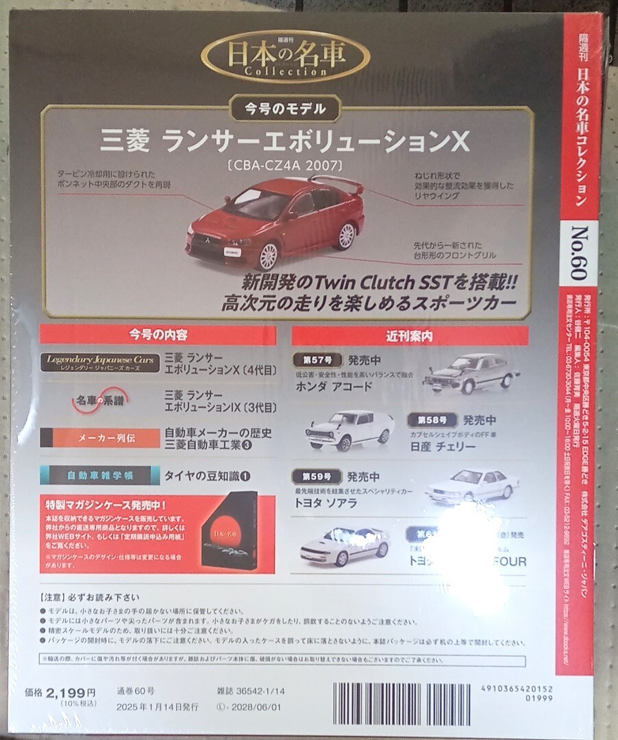 ☆アシェット 1/64日本の名車コレクション60 ミツビシ ランサーエボリューション X[CBA-C4A]2007☆新品未開封品 在庫1個
