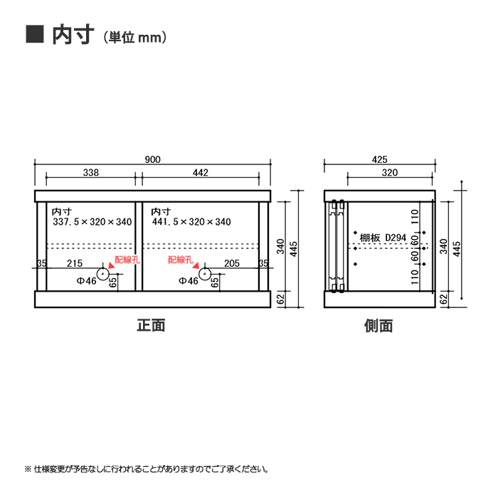 商品サイズ本体:幅90×奥行42.5×高さ44.5 cm