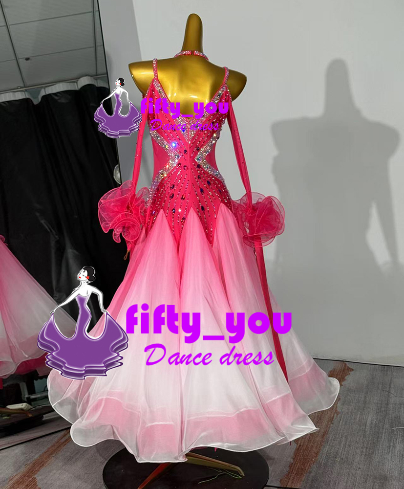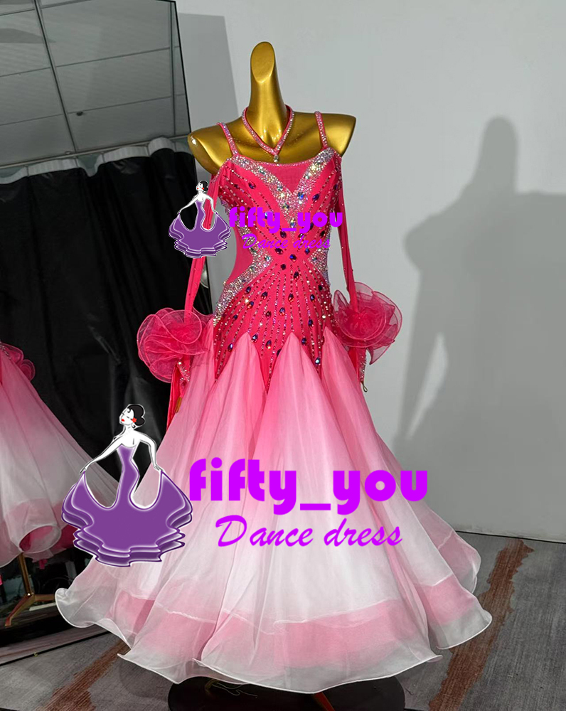 新品fifty_you レディース社交ダンスドレス  モダン競技デモ用ドレス セミオーダー スタンダードドレス グラデーション色 フリル飾り