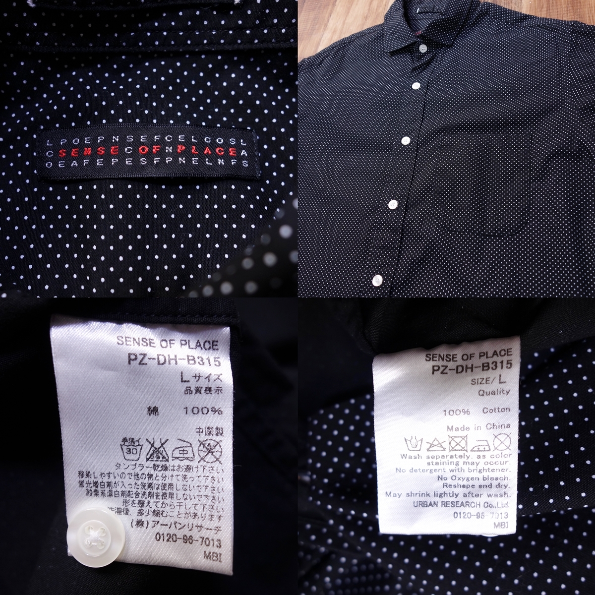 SENSE OF PLACE 長袖シャツ メンズ ドット柄 Lサイズ 古着 黒 ON1