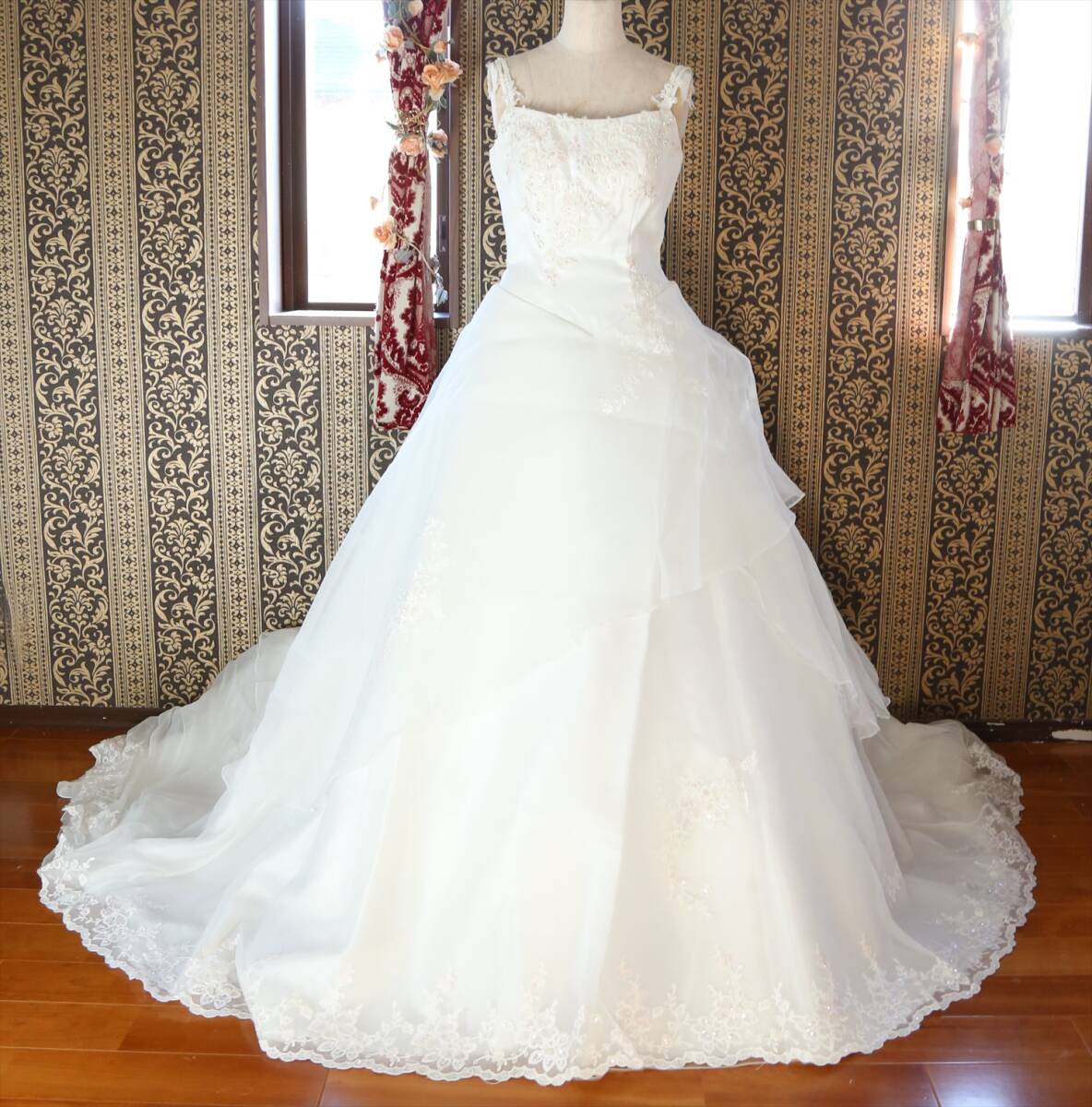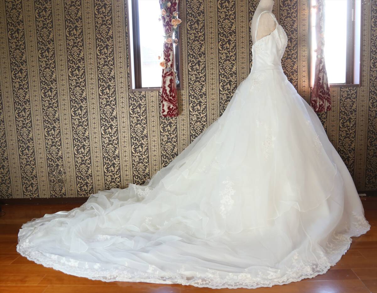 TOUT MIELエメAimer高級ウエディングドレス9号Mサイズロングトレーン