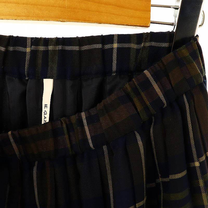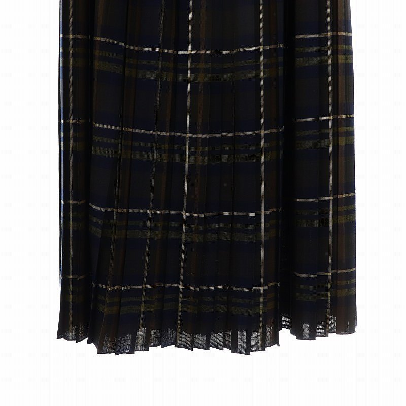 ルグラジック Le glazik チェックスカート プリーツ ロング ウール混 36 紺 ネイビー /KO ■OS レディース