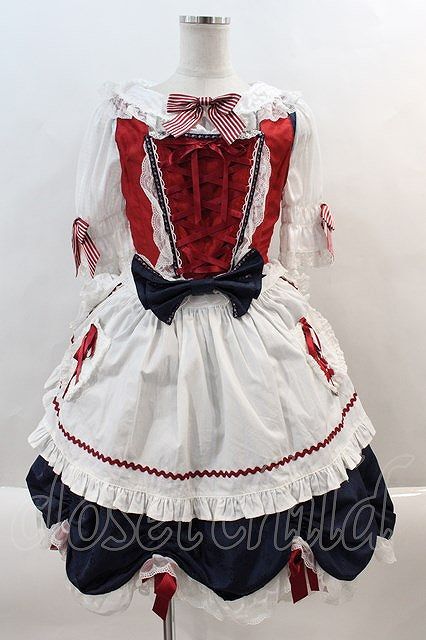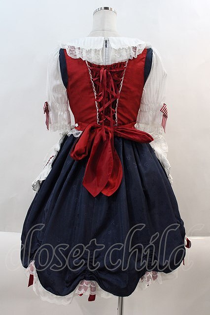 白x赤x紺/-/バブーシュカのあごリボン黄ばみ汚れ/リボンブローチ、ウエストリボン、ビスチェ、バブーシュカ付属/定価¥50,760-/ リサイクル品の為、記載の無い若干のシミ・汚れ等がある場合がございます。あらかじめご了承の上ご注文ください。詳細はこちら | ||||||||||||||||||||||||||||||||||||