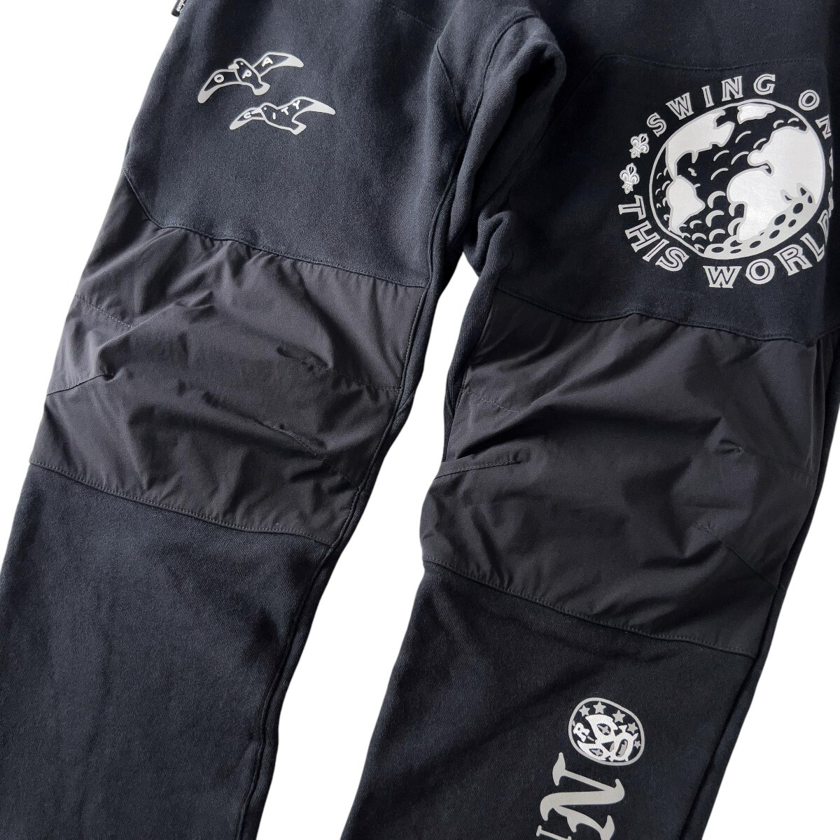 生地には裏起毛のスウェット素材を採用し、肌触りが良く保温性にも優れているため、寒い季節のラウンドでも快適に着用可能。さらに、膝部分には異素材の切り替えを施し、動きやすさと耐久性を兼ね備えた仕様になっています。ウエストはマグネットバックル付きのベルトを採用し、フィット感の調整も簡単。裾にはブランドロゴがあしらわれ、ジョガーパンツならではのスタイリッシュなシルエットを実現しています。