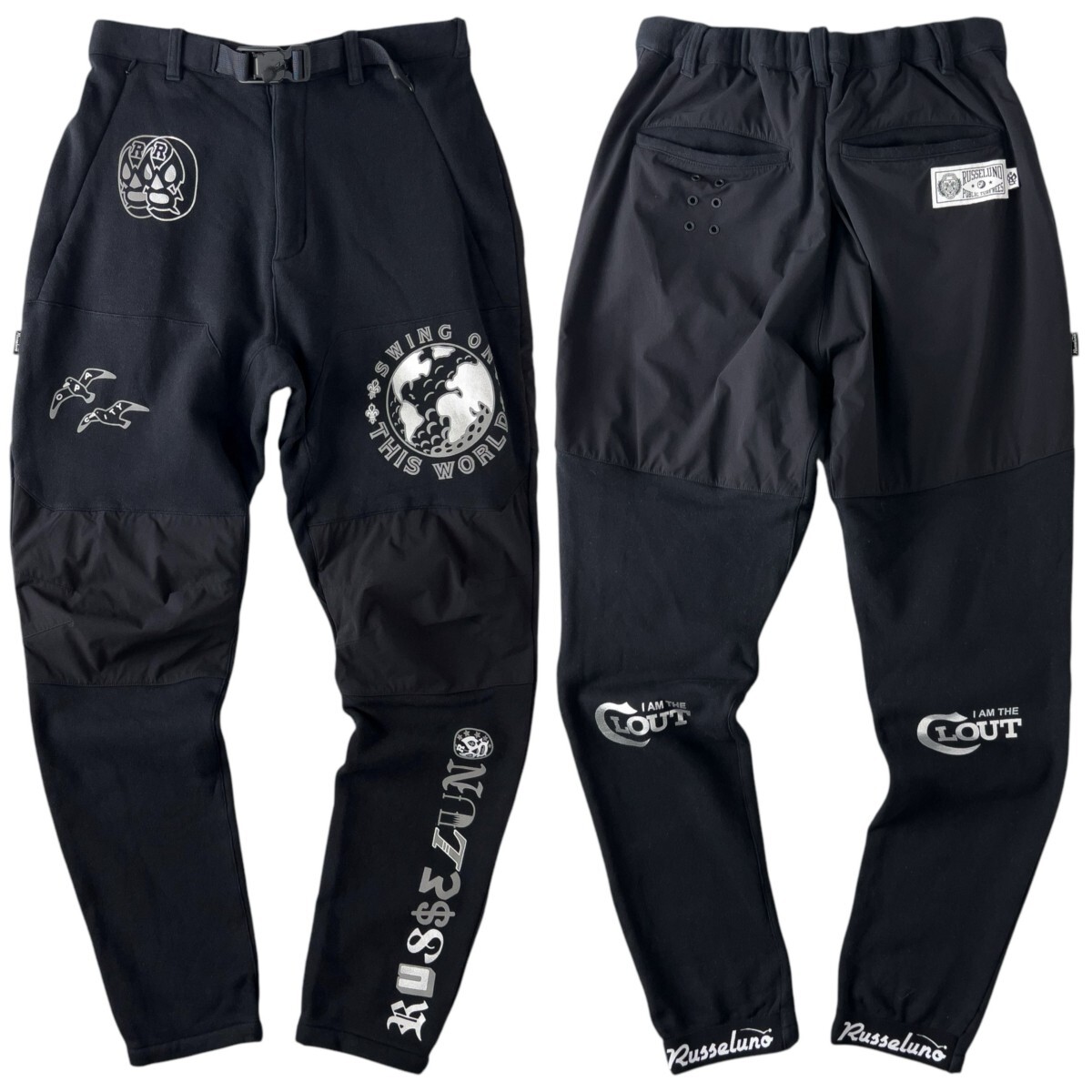 「I AM THE CLOUT」や「SWING ON THIS WORLD」といったメッセージ性のあるプリントが施され、Russelunoならではの遊び心が感じられるデザイン。ストリート感あふれるルチャマスクのモチーフもポイントで、他にはない個性を演出してくれます。ゴルフウェアとしてはもちろん、タウンユースにも活躍する万能な一本。この機会にぜひ手に入れてください。