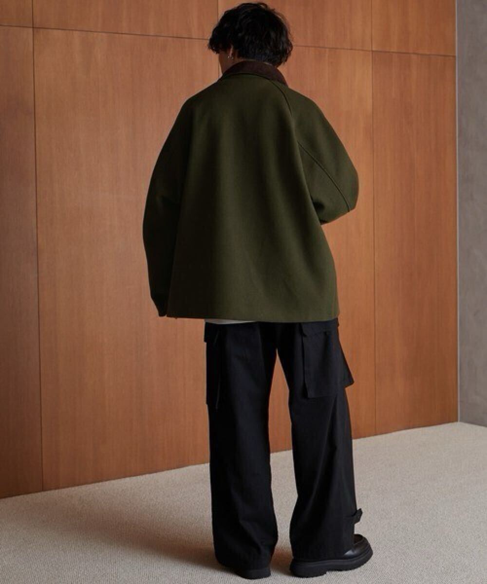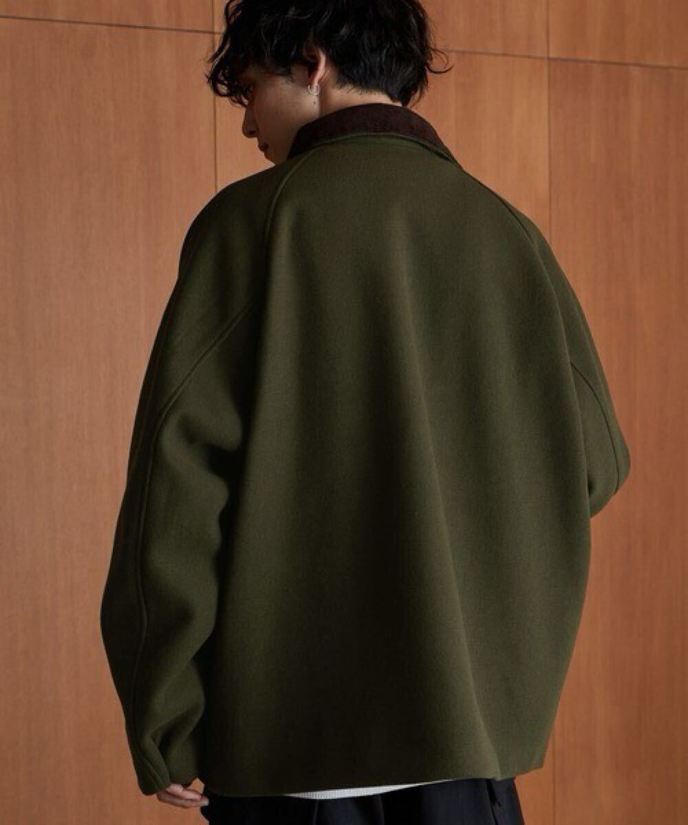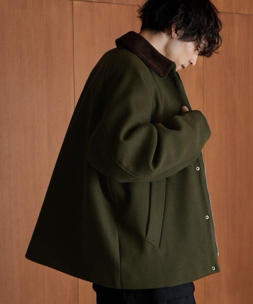 ルーズなシルエットとモダンなメルトン生地で表現したクラシックなルックス。ラグランスリーブのミドル丈でアクティブに動きやすく、ラフに着こなせるのがポイントです。