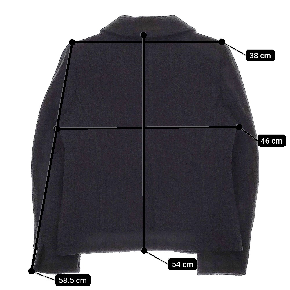 実寸サイズ | 肩幅:約38cm 着丈:約54cm 身幅:約46cm 袖丈:約58.5cm ※記載以外のサイズが合わないことを理由とした返品はできませんので、 記載部分以外で実寸サイズの気になる箇所があれば必ず購入前にご質問ください。 |