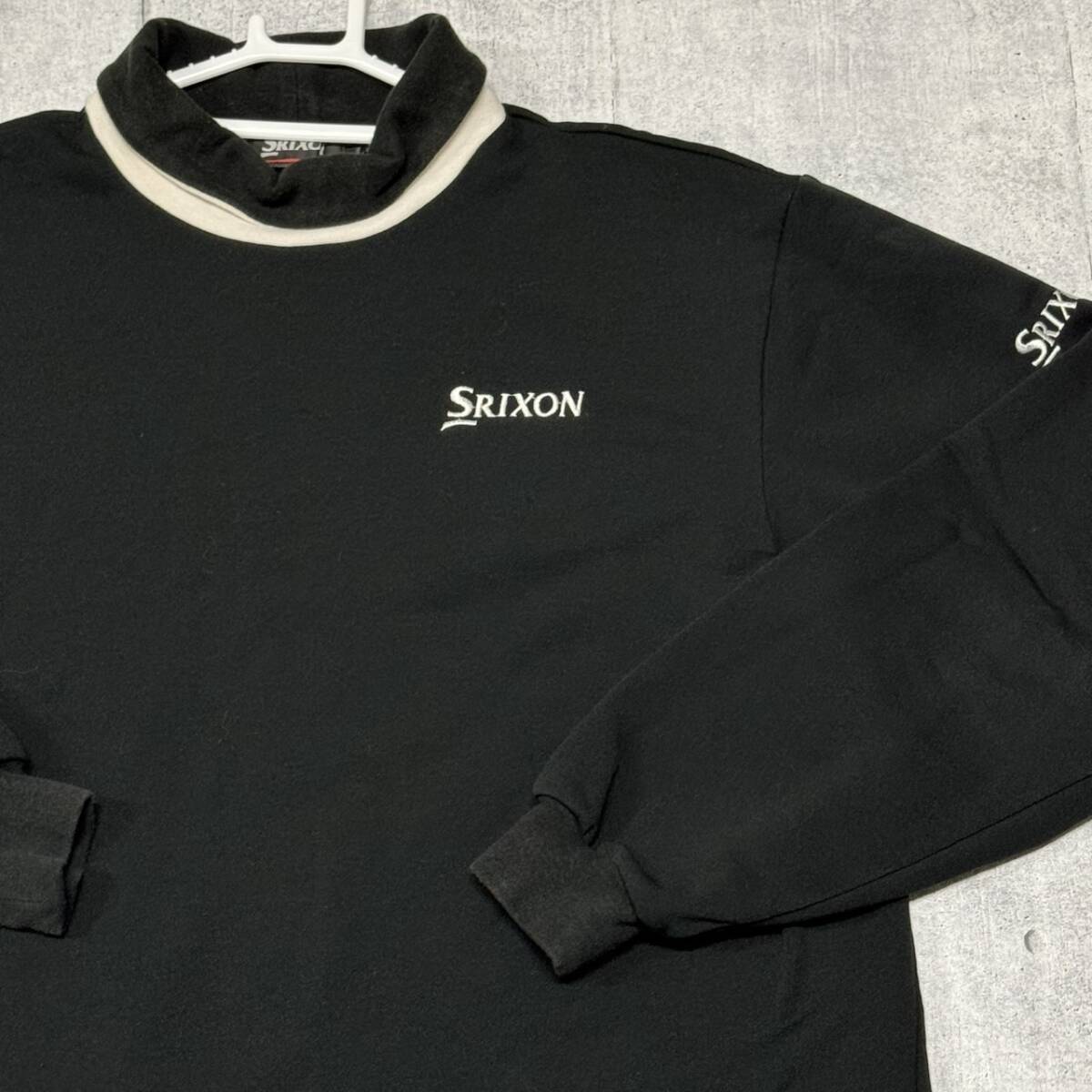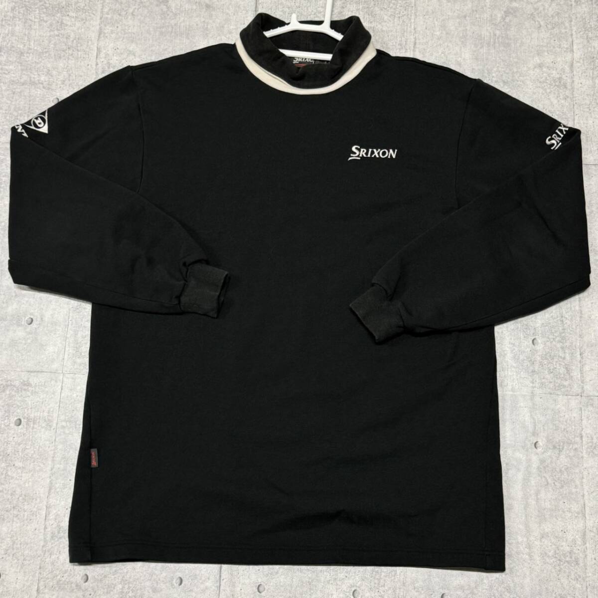 SRIXON モックネック スウェット ジャージ ストレッチ スリクソン  裏起毛 トレーニング スポーツ タウンユース 刺繍ロゴ 早4824 ブラック×ホワイト ハイネック ワンポイント