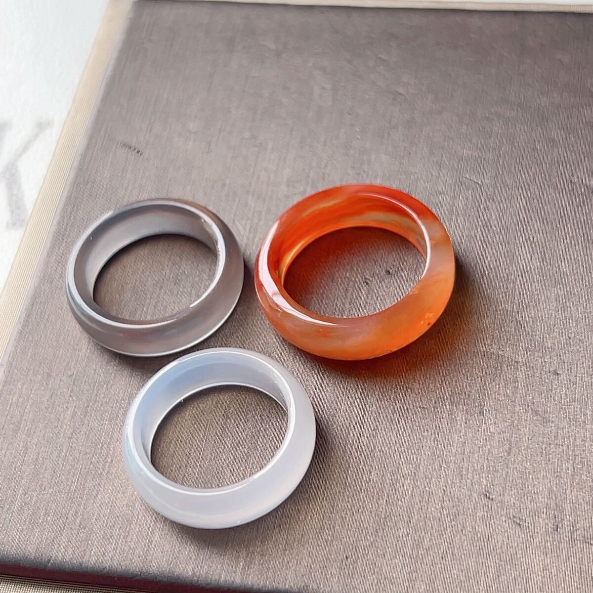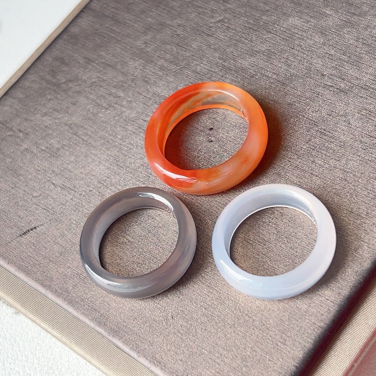 まとめ◇赤瑪瑙+灰瑪瑙+白瑪瑙◇指輪◇リング3点セット◇メノウ ◇天然石◇パワーストーン◇巾着袋付◇プレゼントにも030S3139