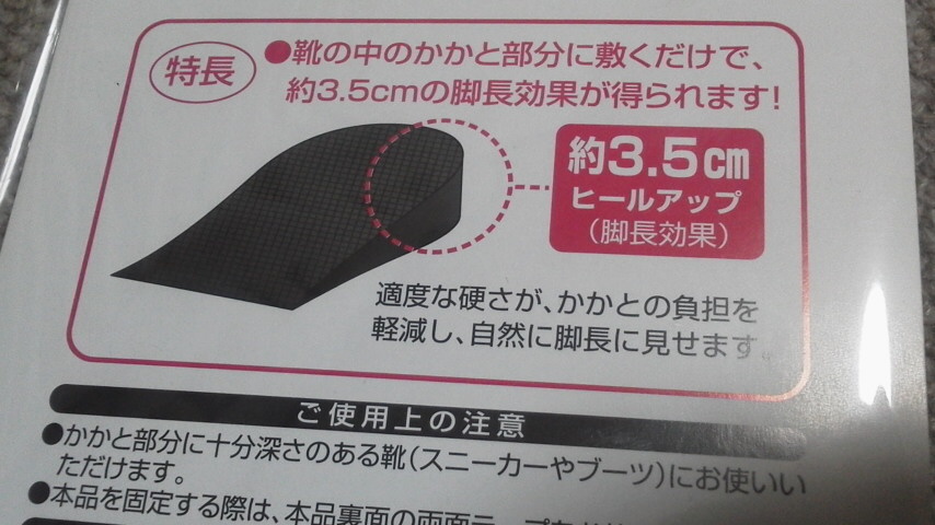 靴内のかかと部にしくだけで約3.5㎝の脚長効果が得られます!