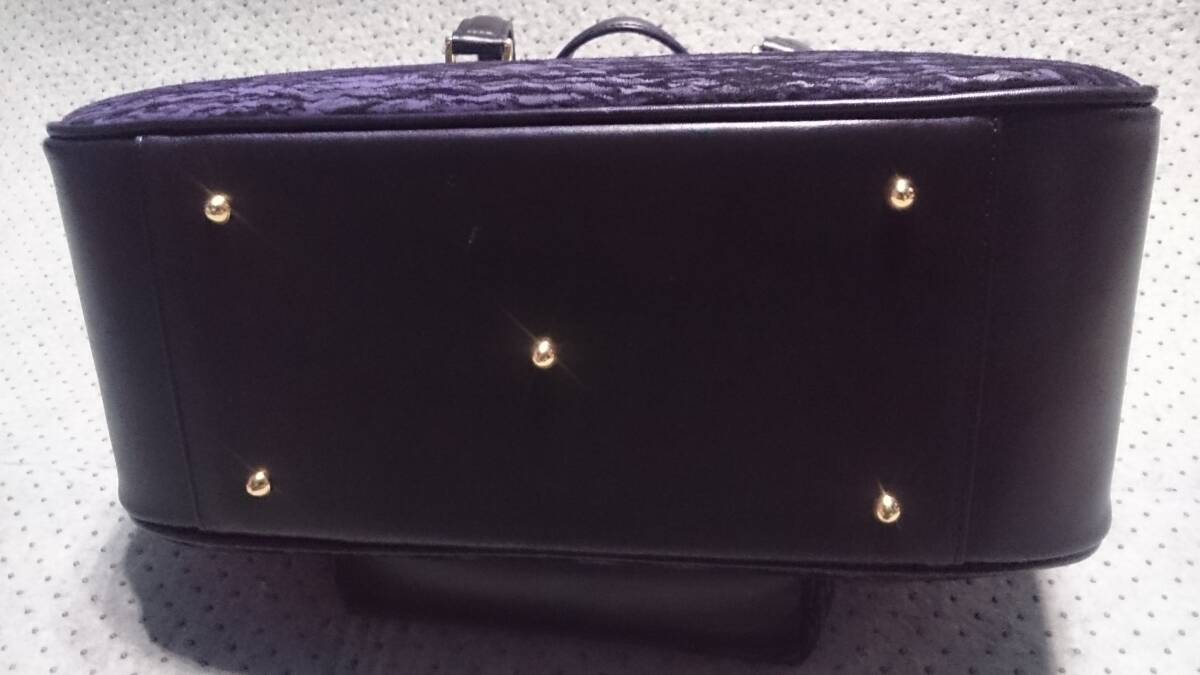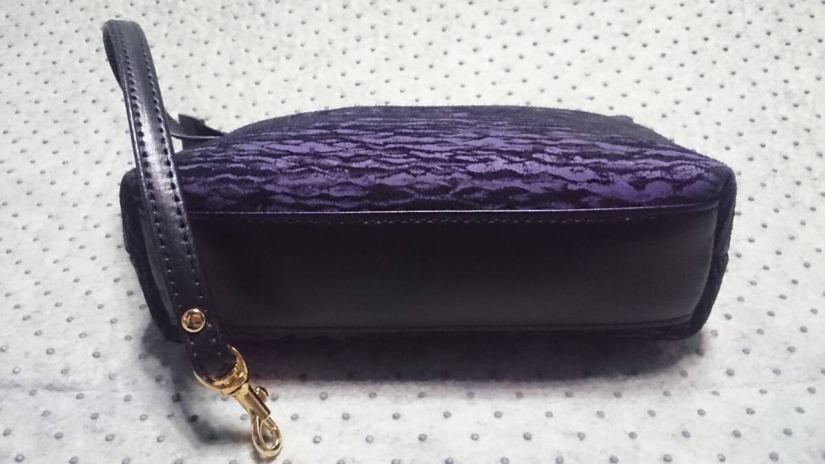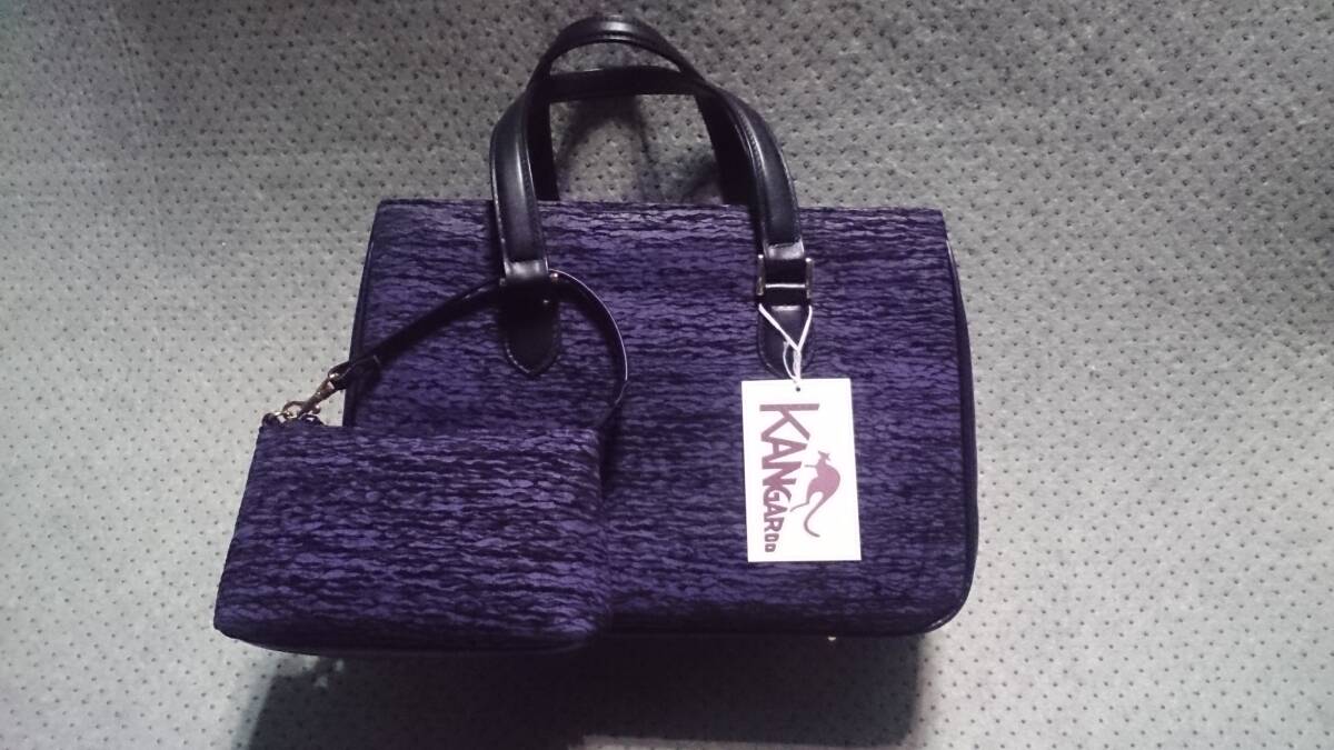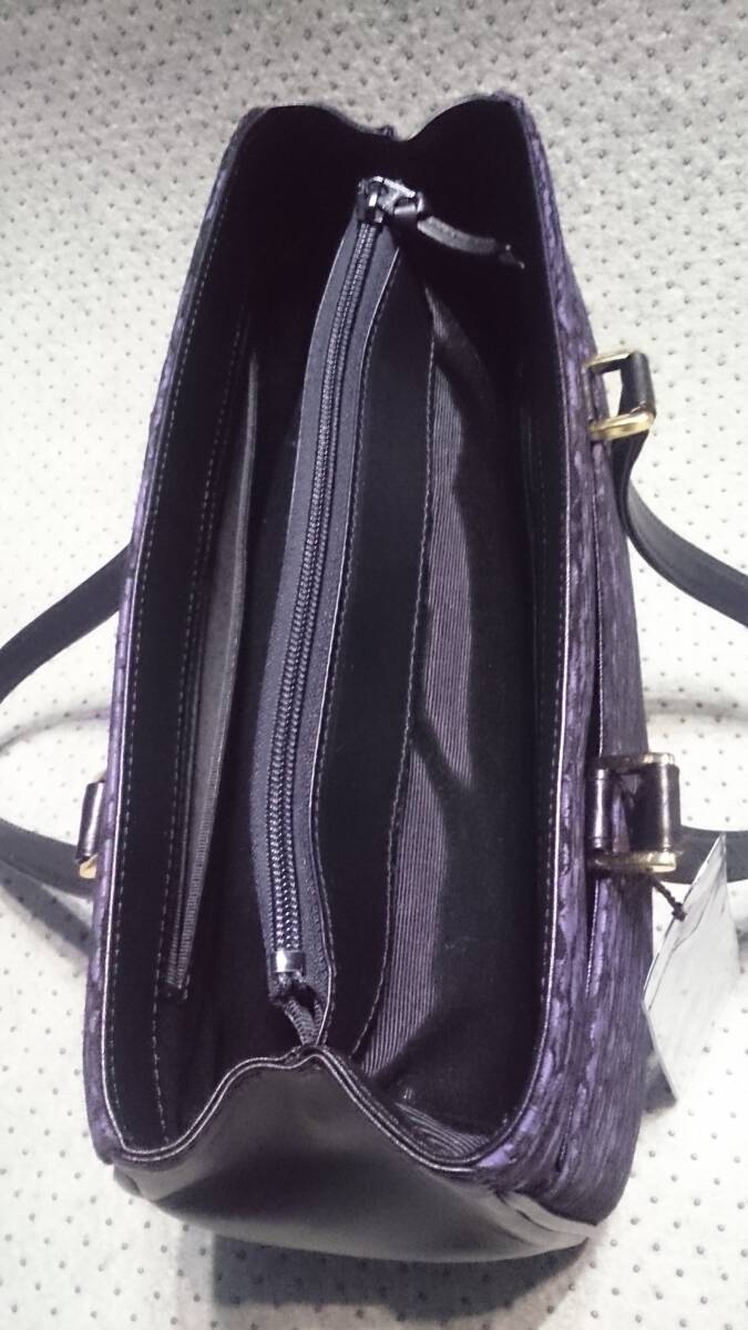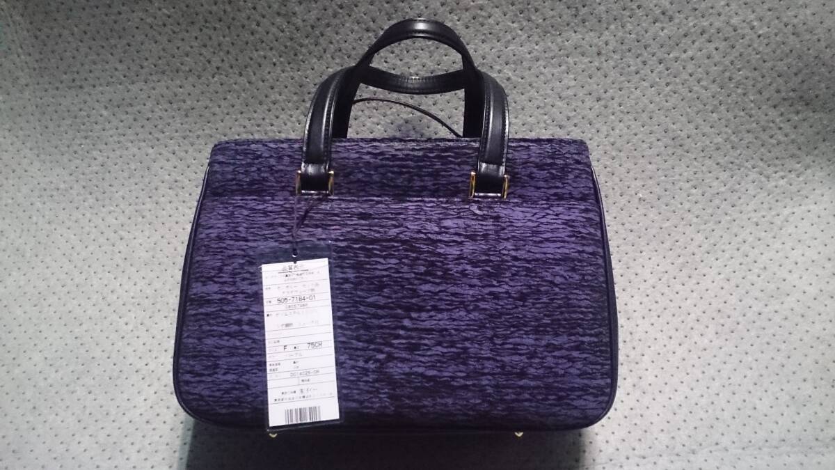 未使用/タグ付 ダイトー / 東京ブランド 日本製 グラダウェーブ柄 波柄 本革 カンガルー レザー トートバッグ ハンドバッグ&ポーチ 紫/黒