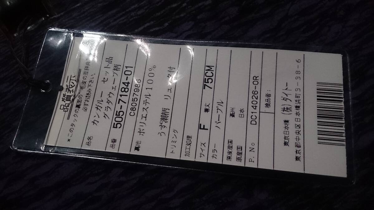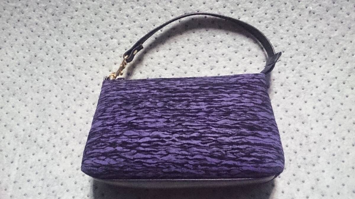 未使用/タグ付 ダイトー / 東京ブランド 日本製 グラダウェーブ柄 波柄 プリント オーストラリア 本革 カンガルー レザー トートバッグ ハンドバッグ & ポーチ 紫/黒