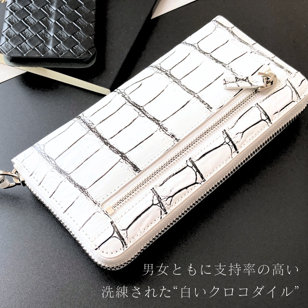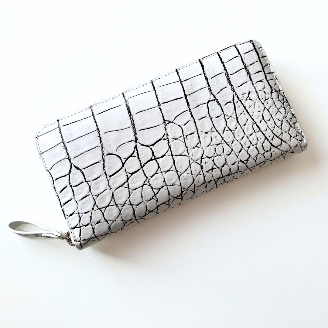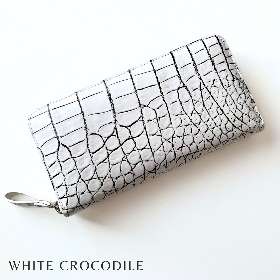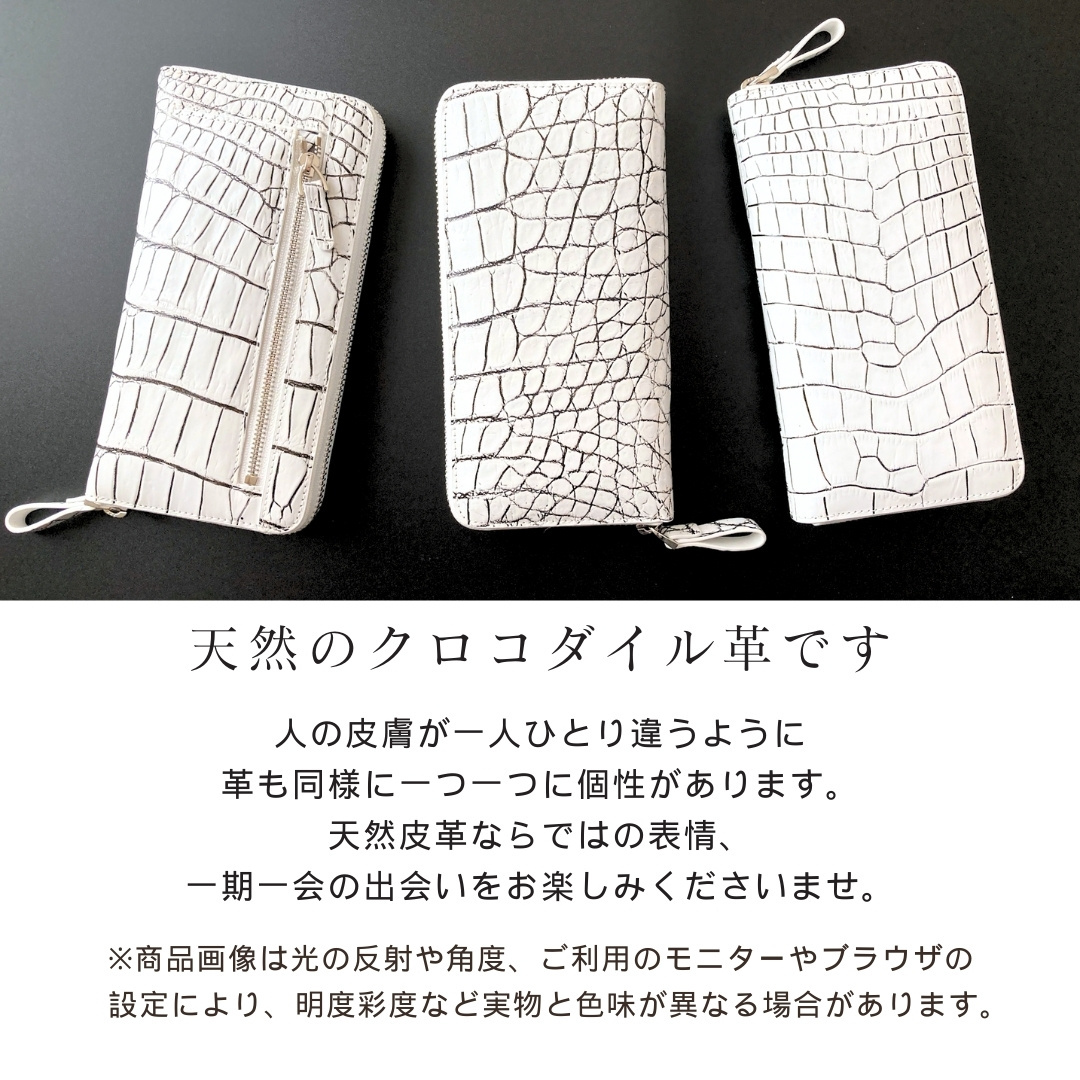 クロコダイル 財布 目地染め ホワイト 白 長財布 鰐革 ワニ革 高級革 ラウンドファスナー 本革 メンズ レディース