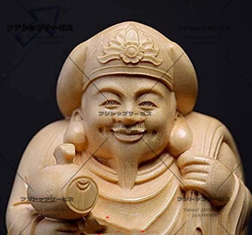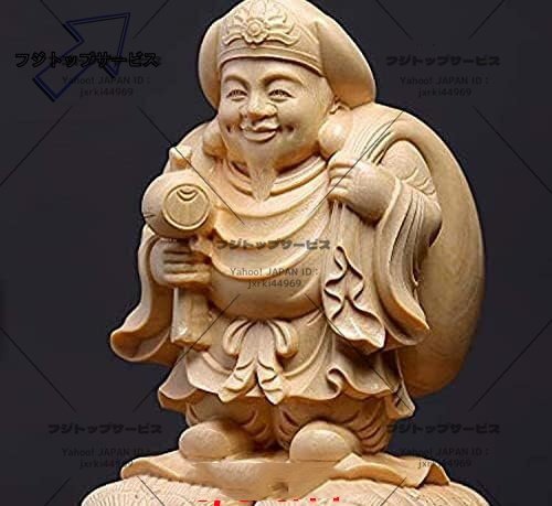 仏像 開運招福七福神 大黒天 木彫り 桧木製 縁起物 玄関置物 開運招福 商売繁盛 無病息災 五穀豊穣 子孫繁栄 高さ16cm×巾9.5cm×奥行8.5cm