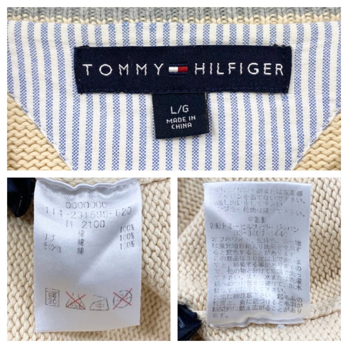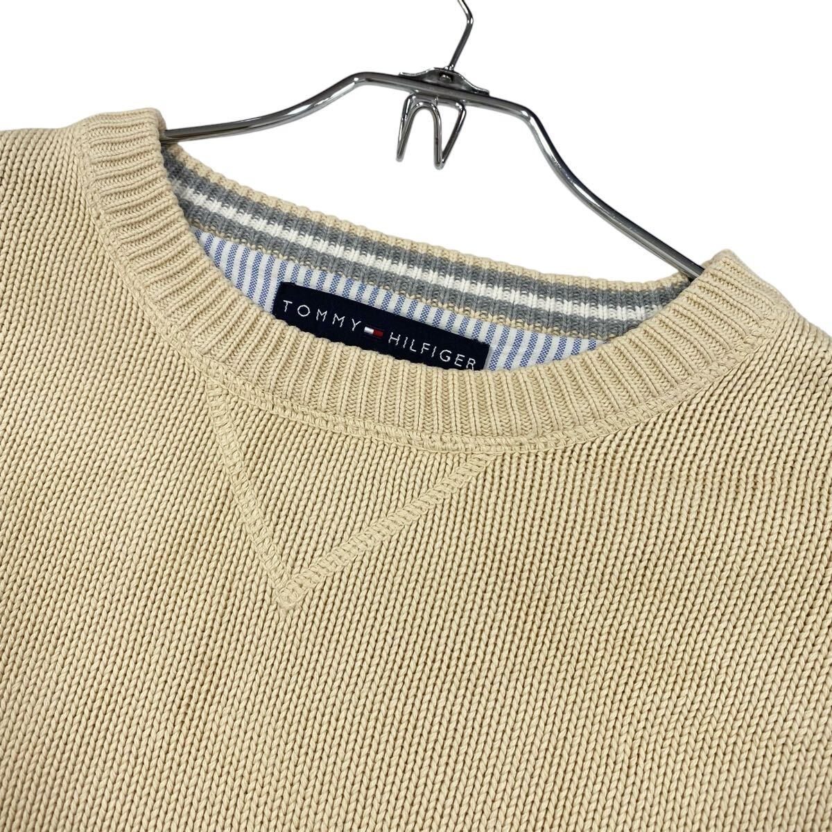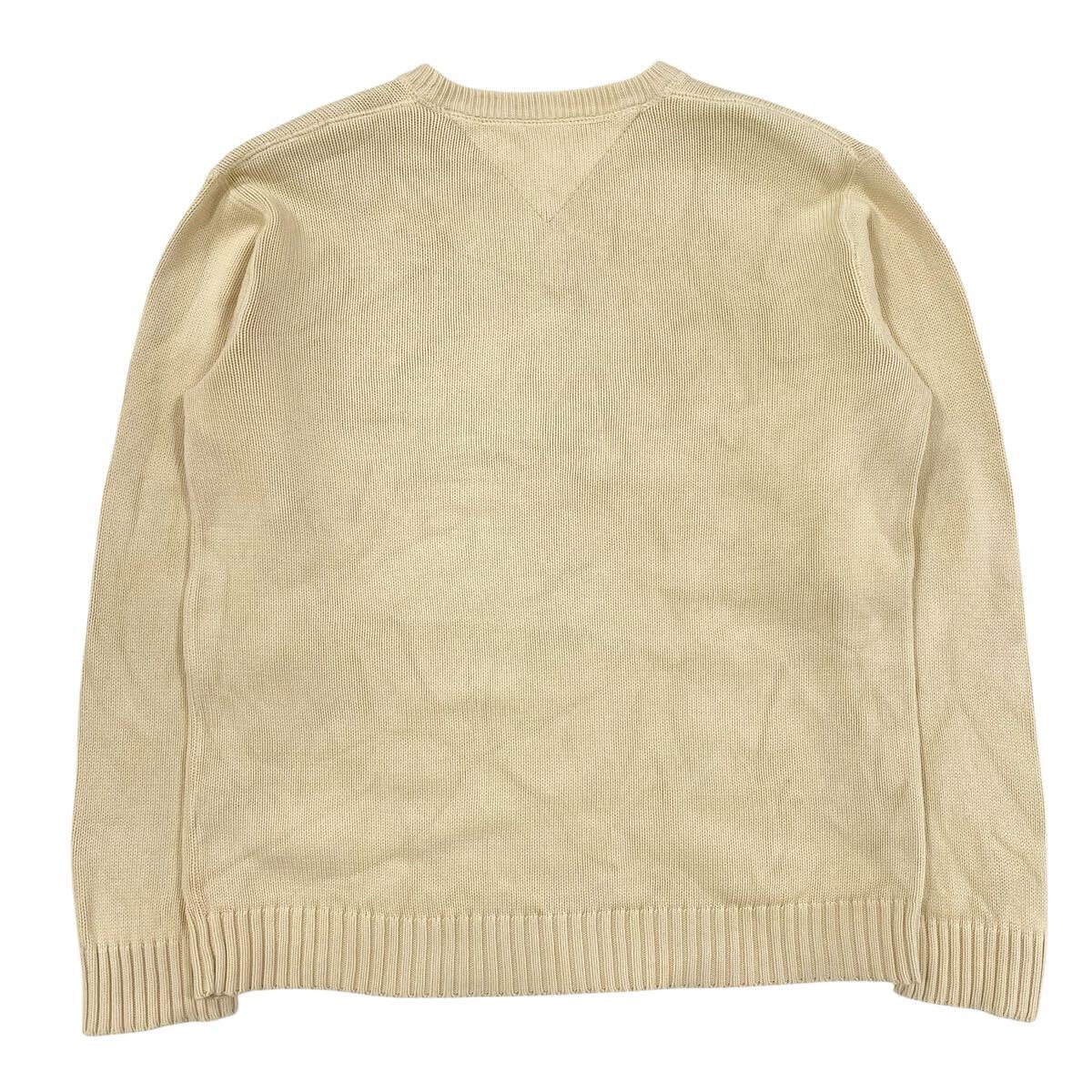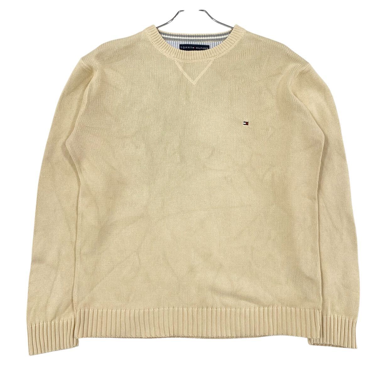 【TOMMY HILFIGER(トミーヒルフィガー)ニット セーター コットンニット 刺繍ロゴ メンズL ベージュ系】