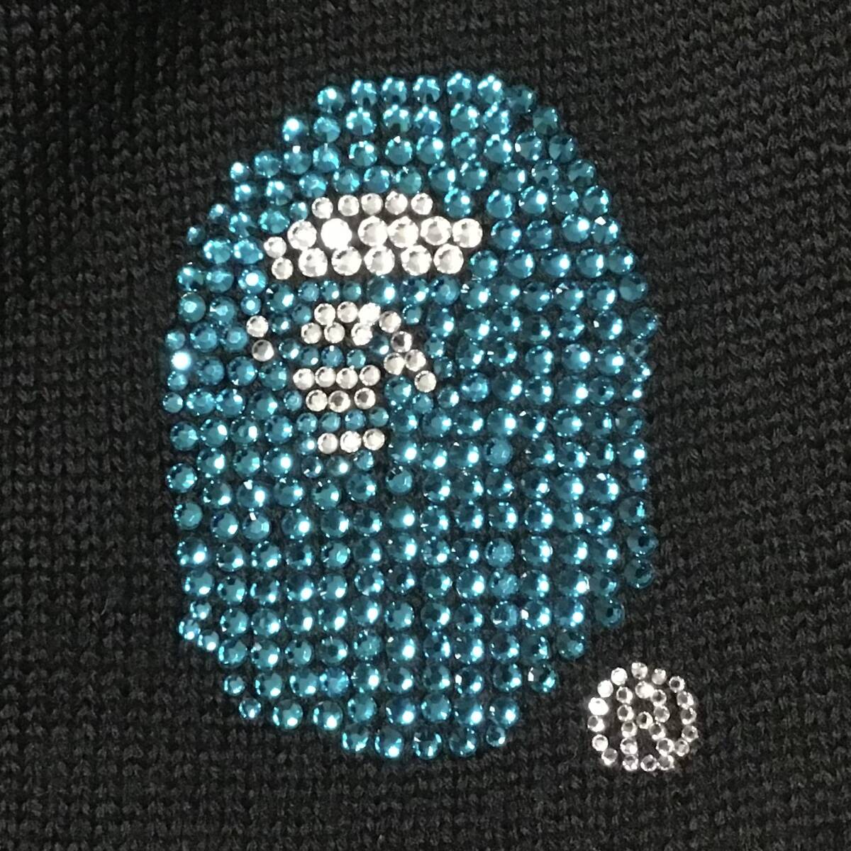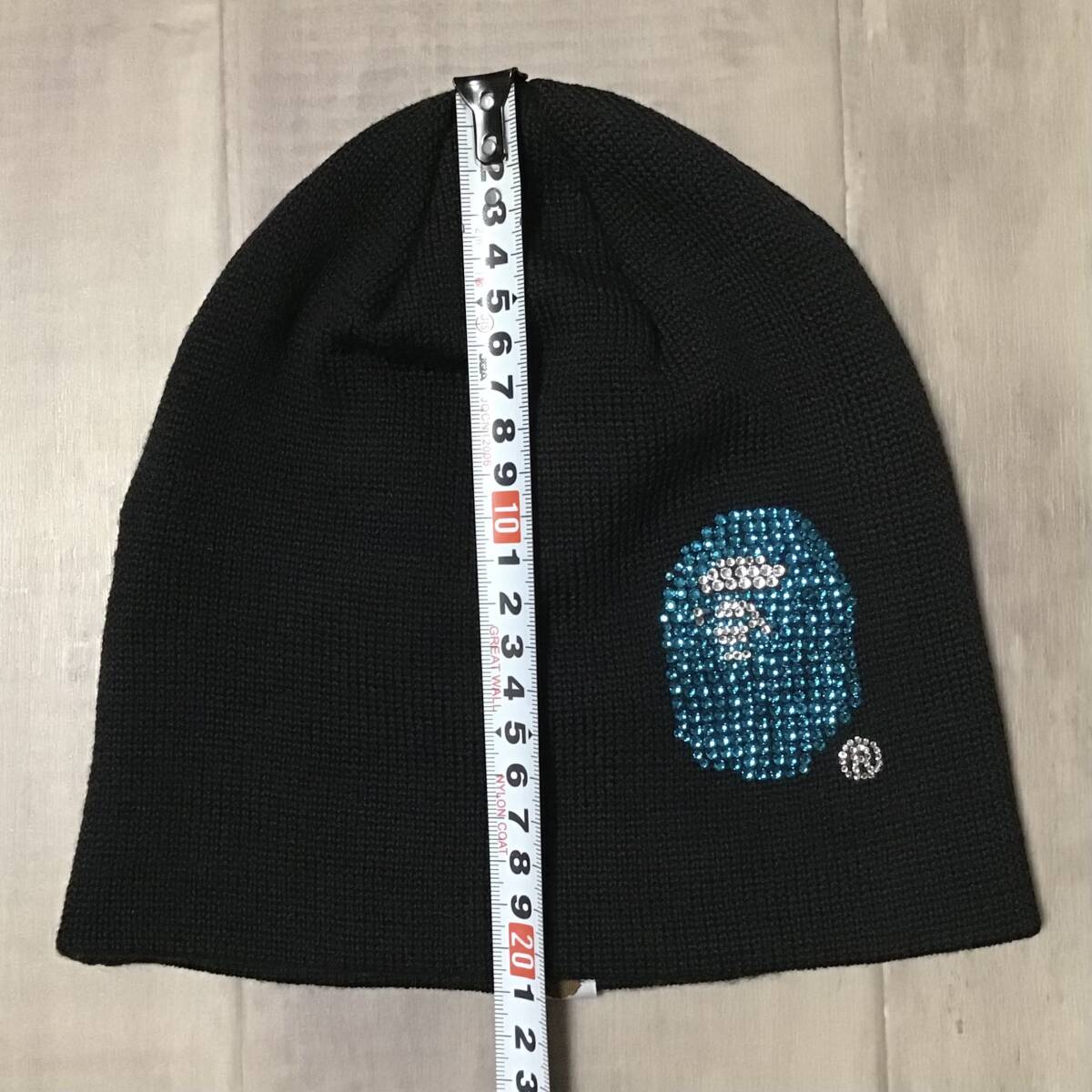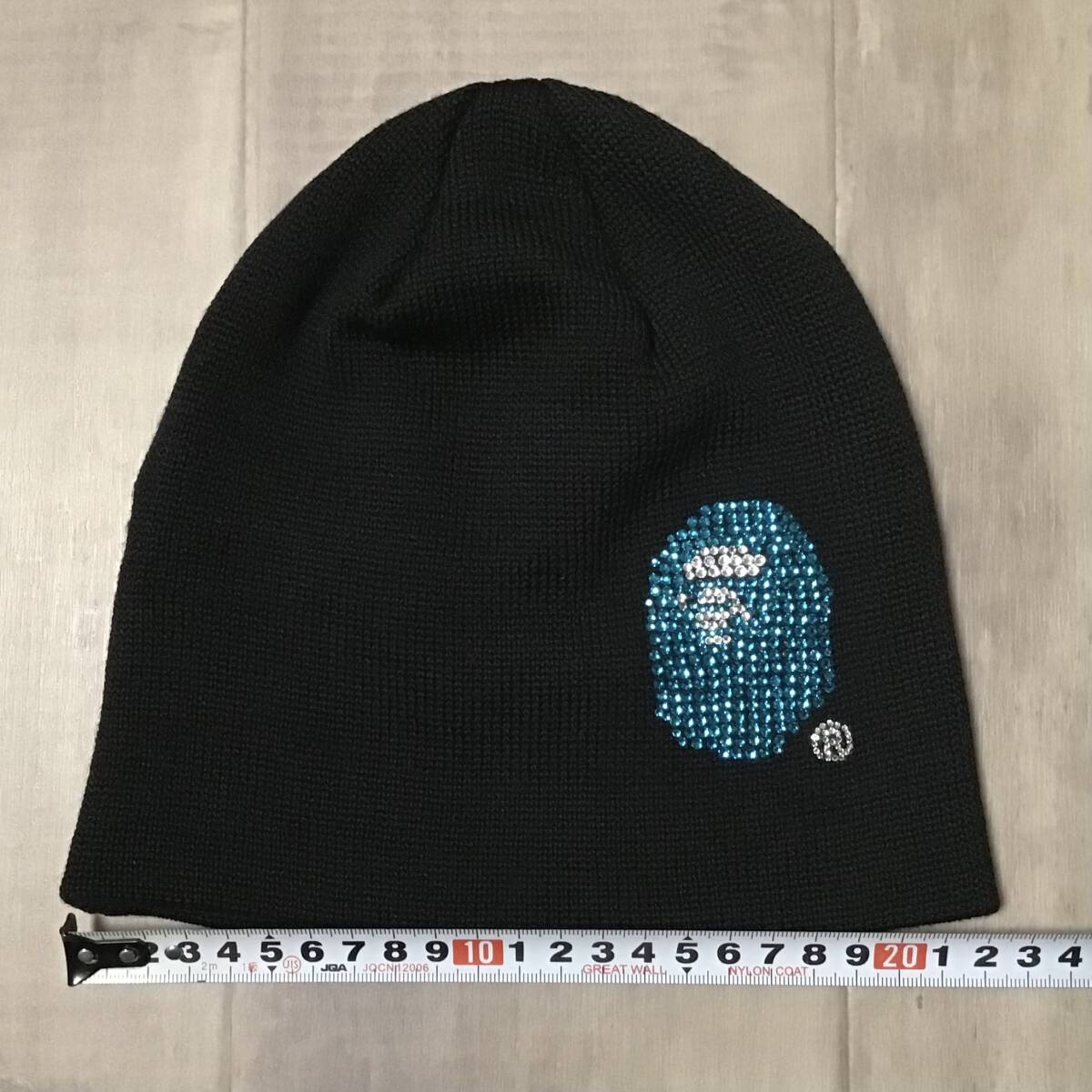a bathing ape スワロフスキー APE FACEロゴ ニットキャップ ブラック です★