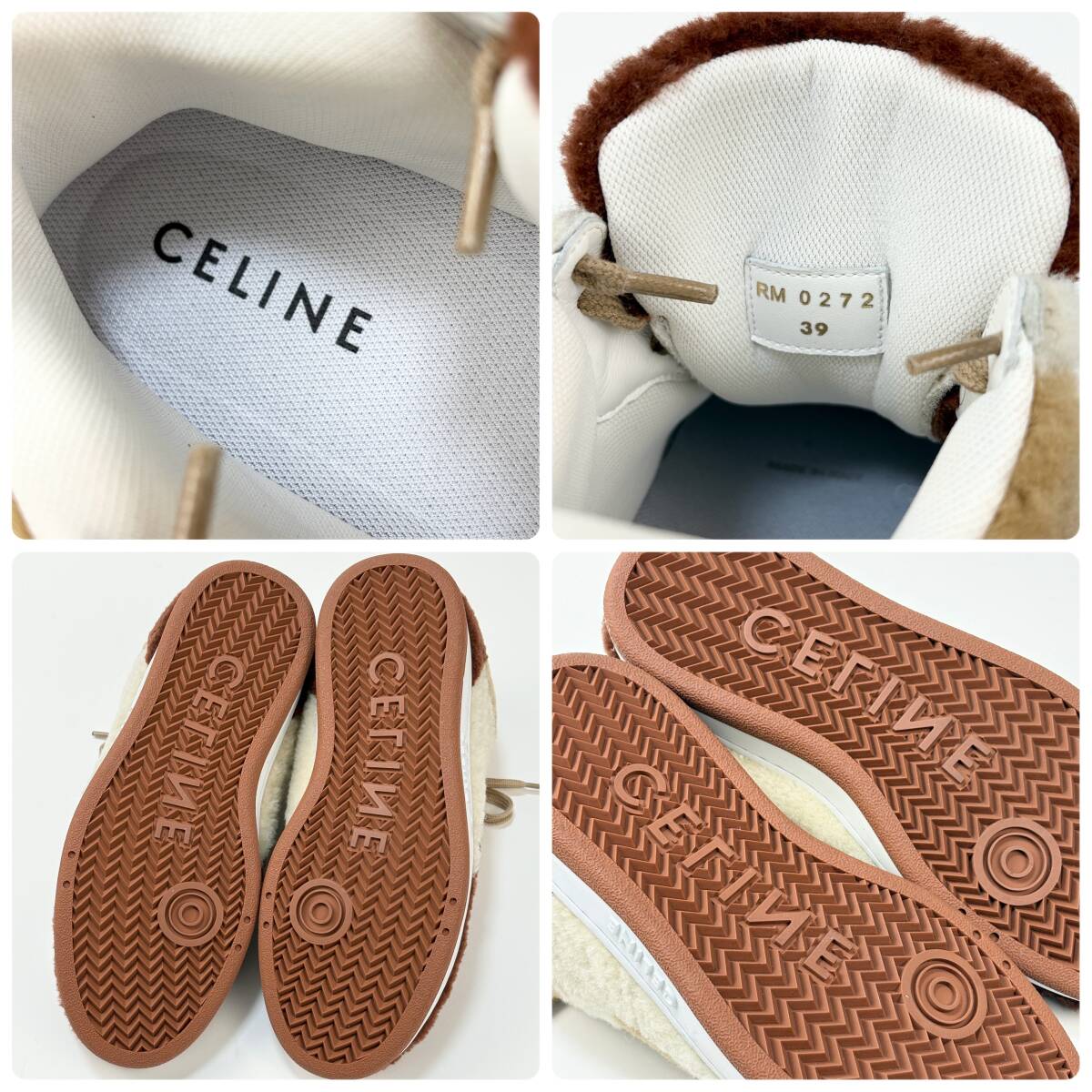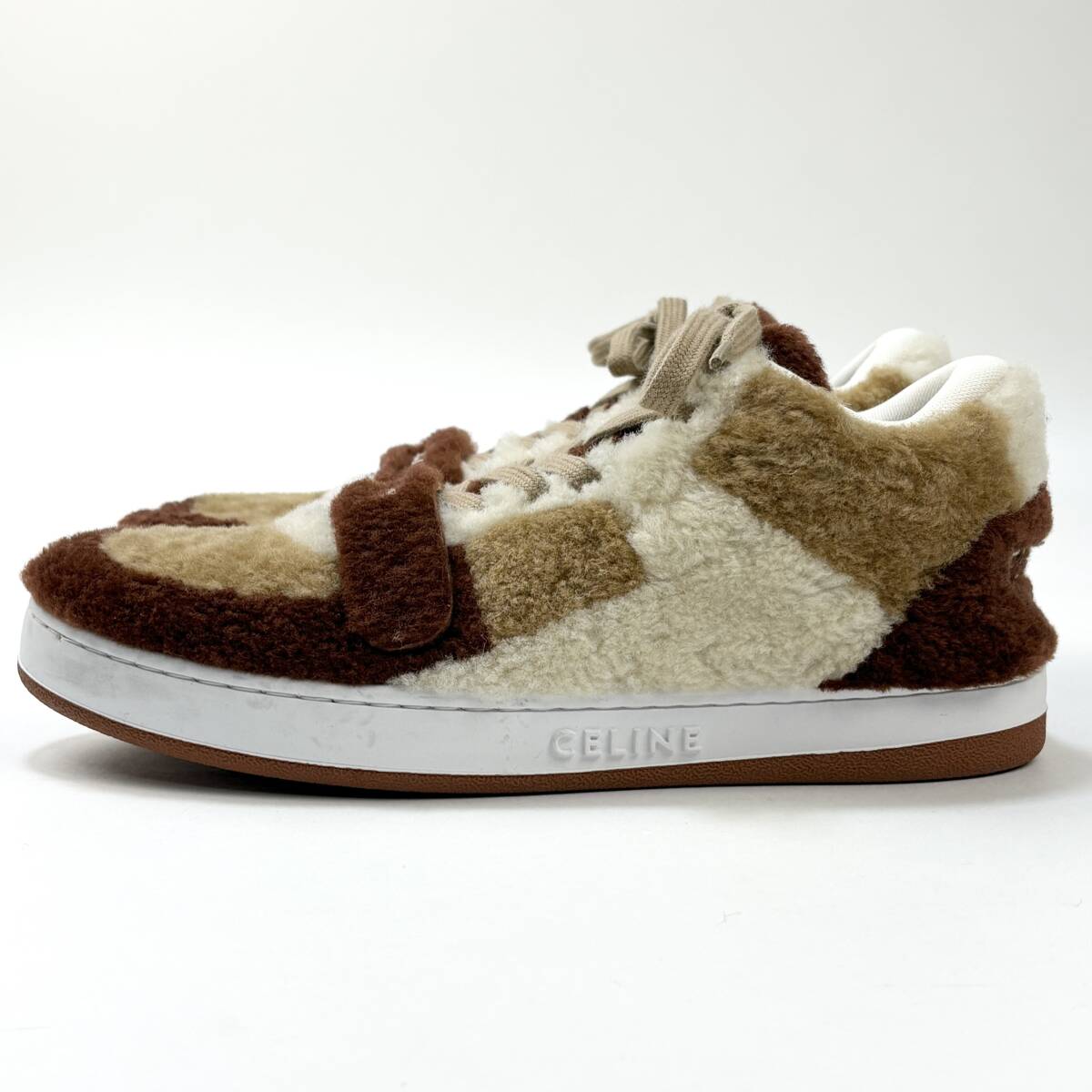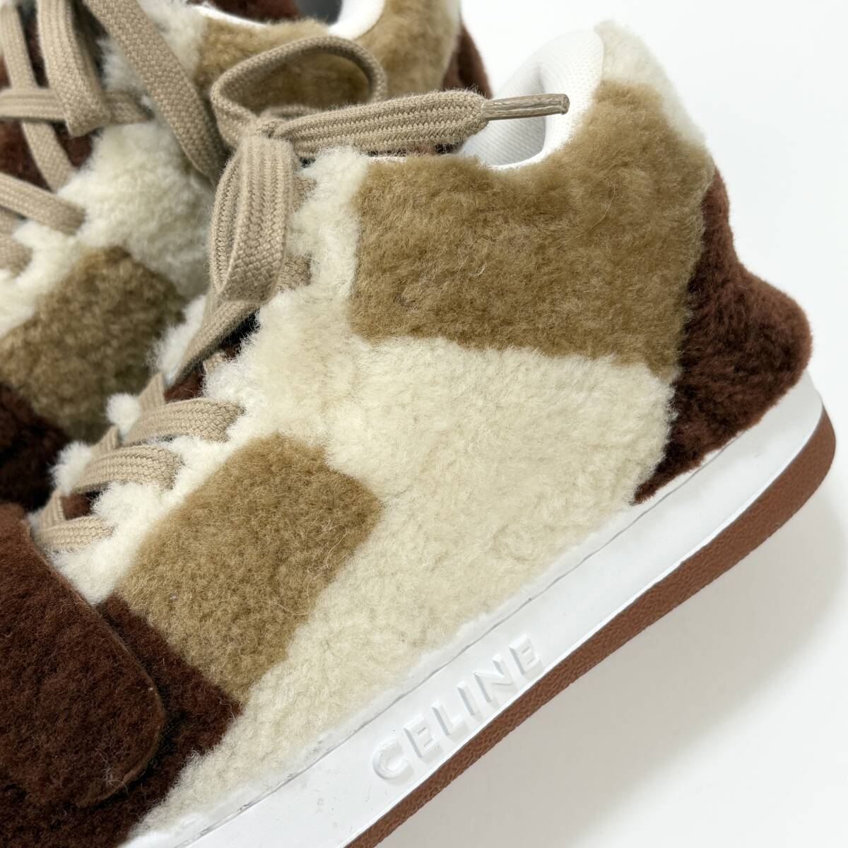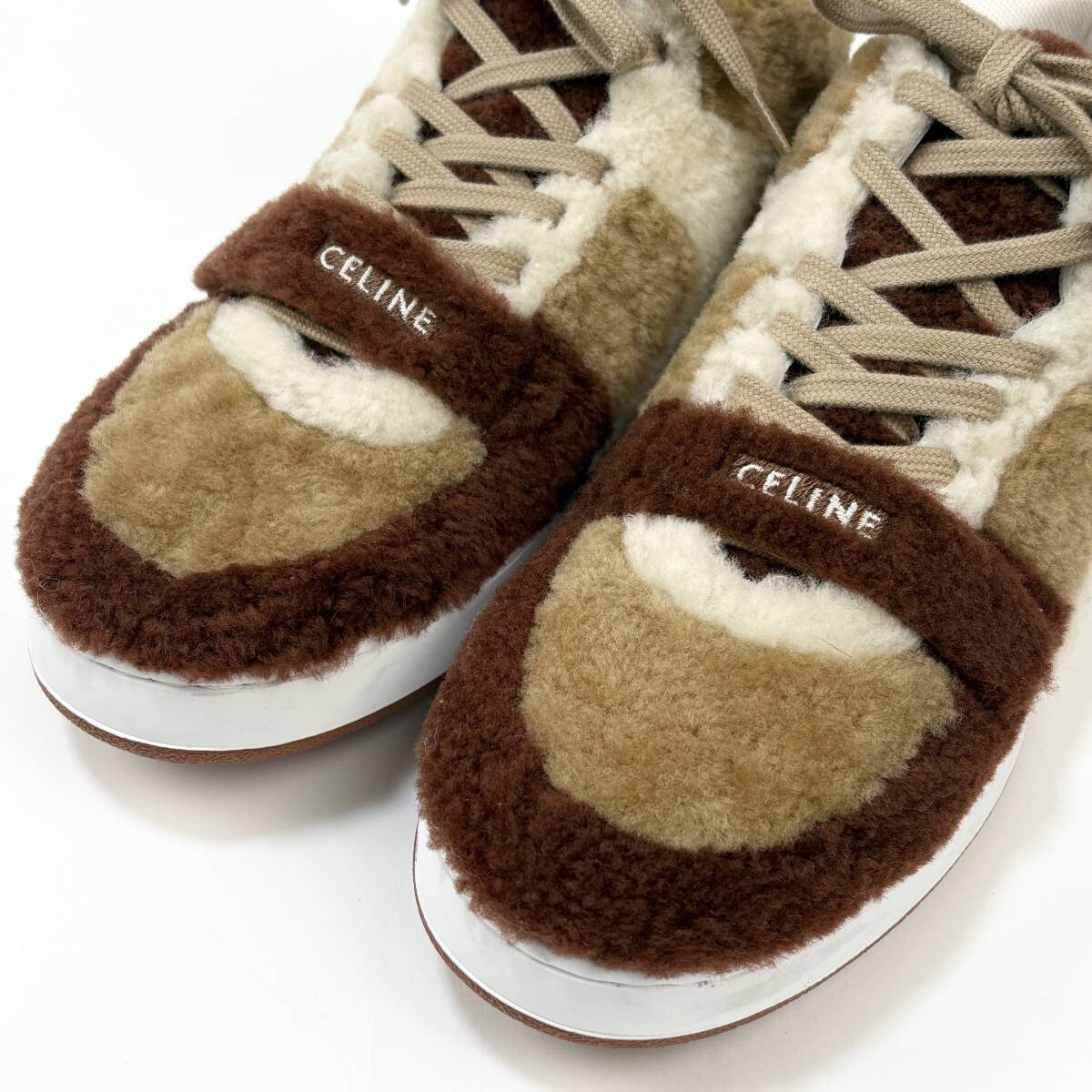 極美品 CELINE by Hedi Slimane CT-02 ベルクロストラップ ミッドスニーカー / シアリング 350883735C.19ED 39 ロゴ ボア ムートン SSM4992