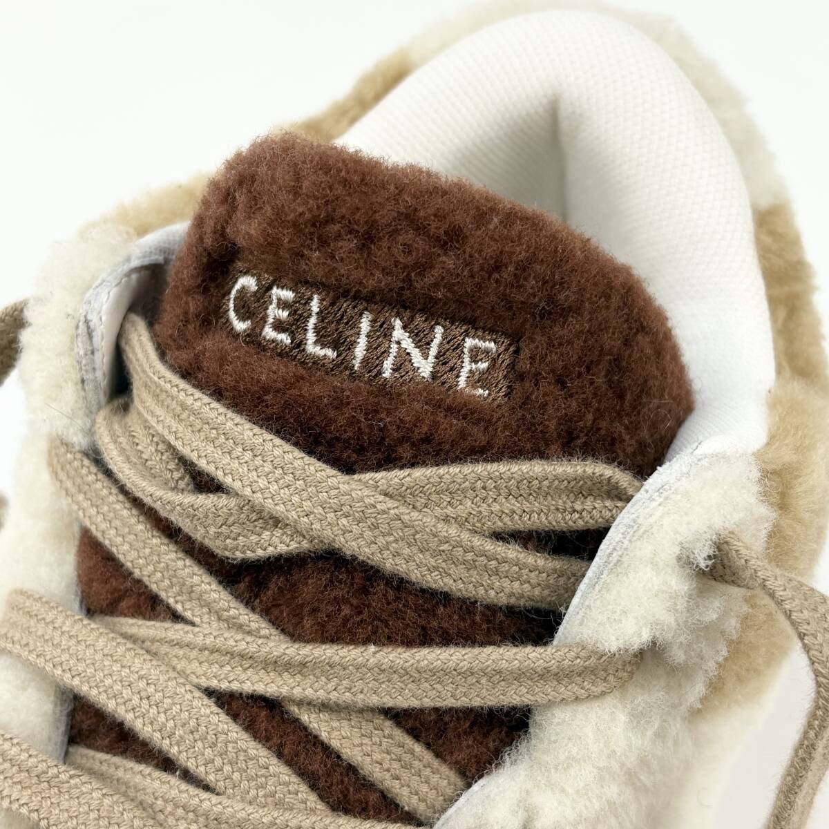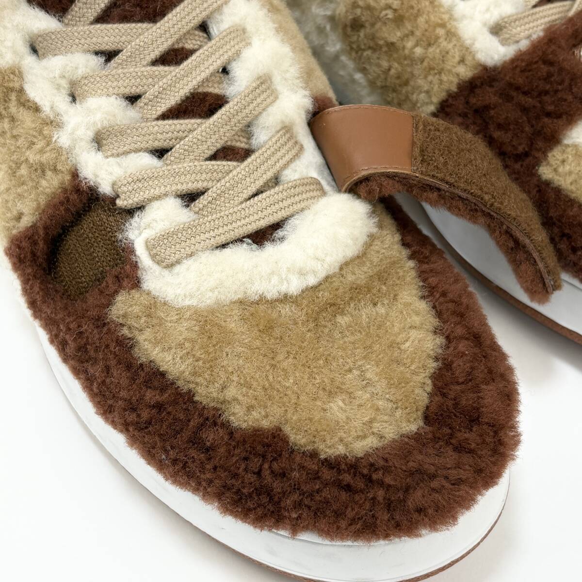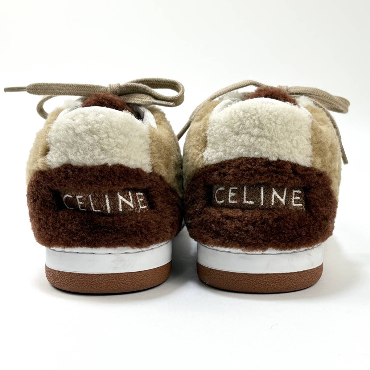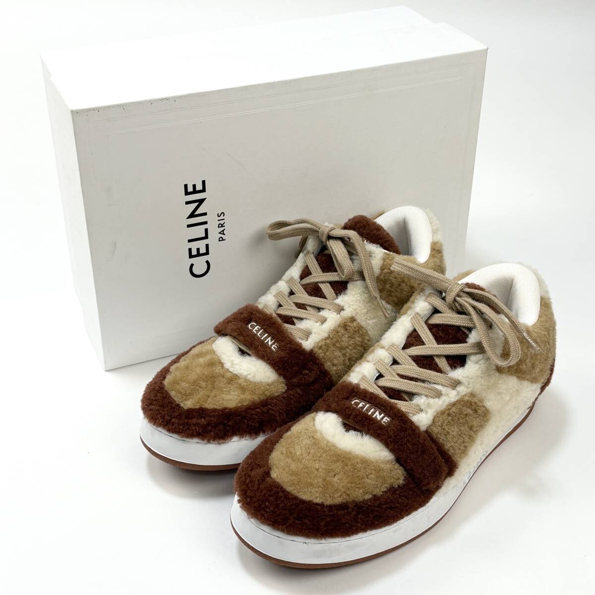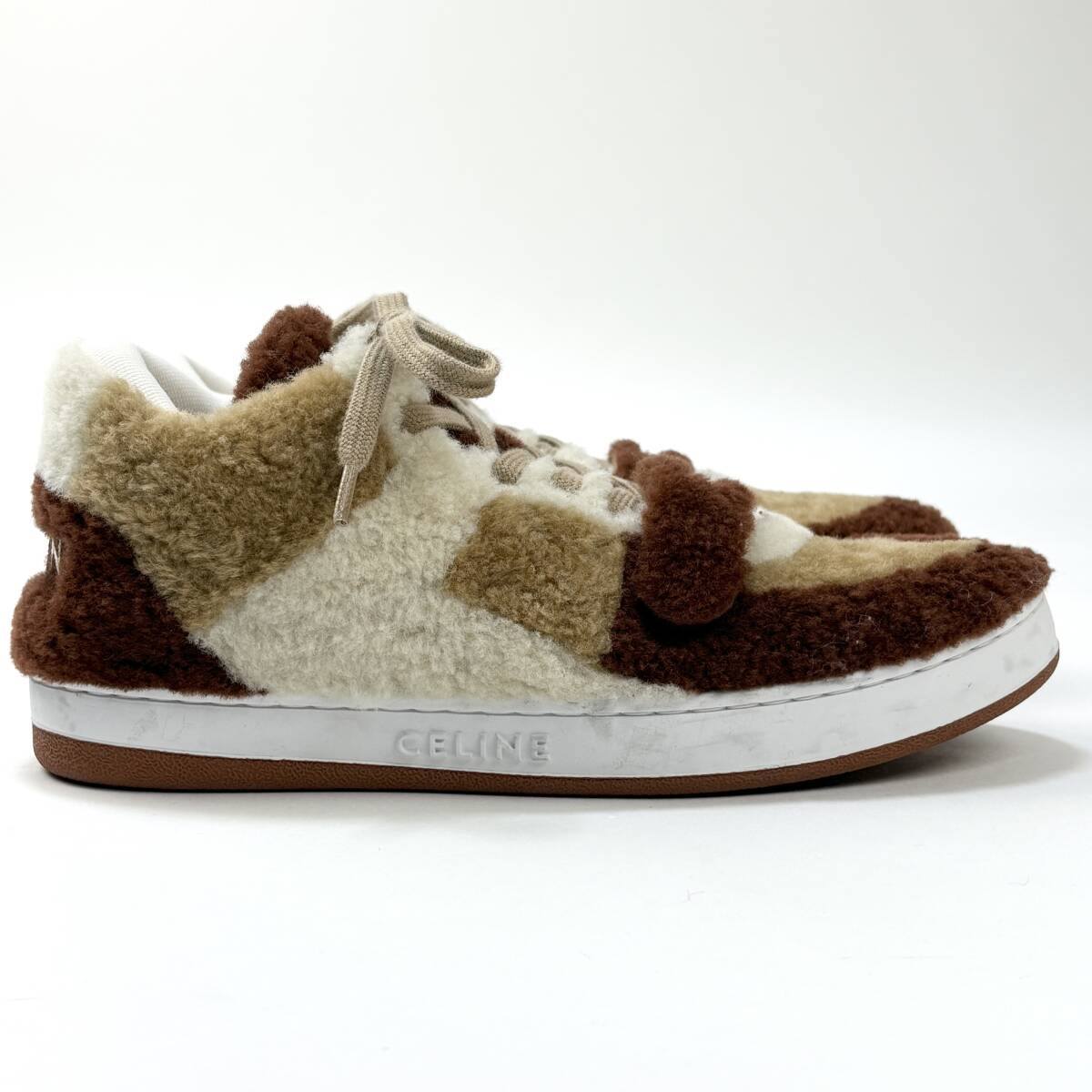 極美品 CELINE by Hedi Slimane CT-02 ベルクロストラップ ミッドスニーカー / シアリング 350883735C.19ED 39 ロゴ ボア ムートン SSM4992