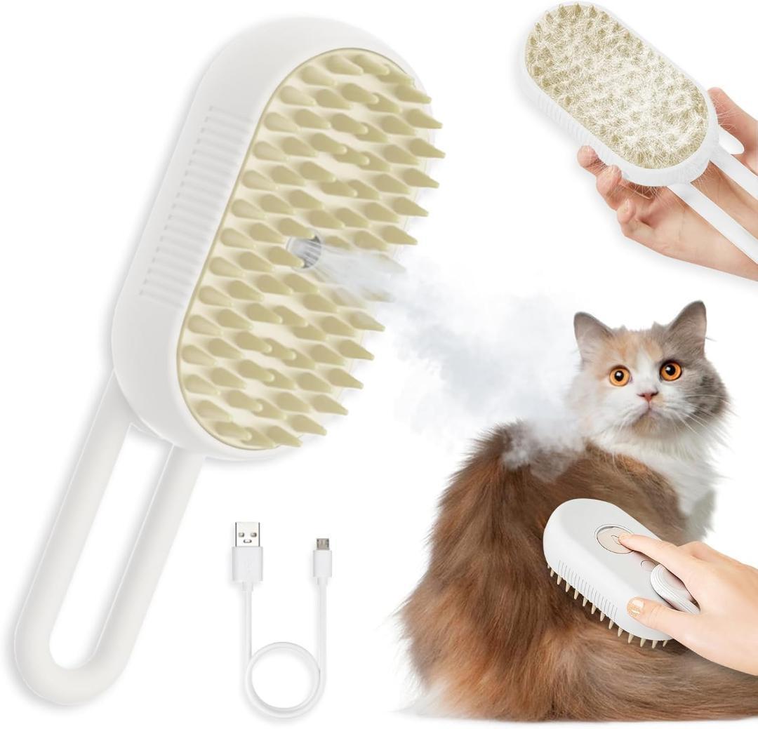 【360° 回転可能な手柄】このペットブラシには、360° 回転可能な手柄が付属しています、角度や手柄を調整することで、最も快適な使用感を得ることができます、また、ペットを最も適切な角度でクリーニングすることができ、腕の負担を軽減することができます、注意: 最初に使用すると、猫や犬がミスト機能を好まない場合があります、その場合は、主人大人がペットに食べ物を誘惑しながら、軽くミストをかけることをお勧めします。