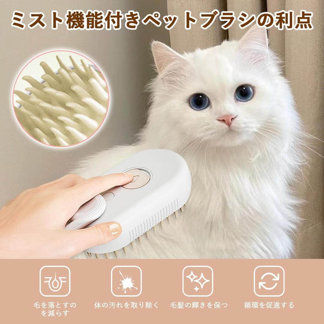 【最新型ミスト機能】前代の製品と異なり、この先進的なペットブラシはミスト機能を搭載しています、ミスト機能を持つペットブラシは、脱毛を効果的に制御し、静電を防止し、毛髪に附着した汚れやつなぎがちを取り除き、毛髪を整った形に整えることができます、水槽に水またはエクストラの成分を注ぎ込み、ミストスイッチを押しますと、かな水霧が毛髪に均一に噴射され、ペットの毛髪がきらめくように整えられます。